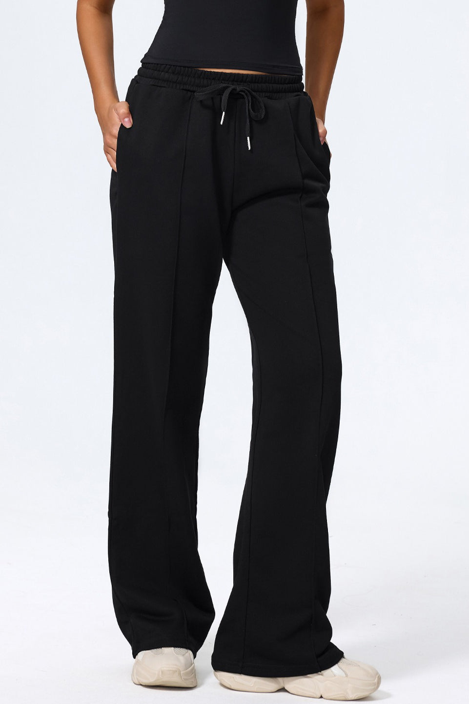 • Waist Type: Mid Waist• Details: Tie Waist• Composition: Cotton, Polyester