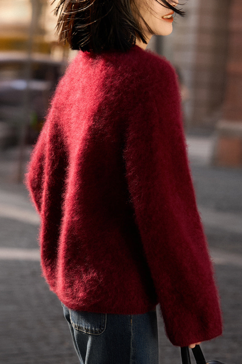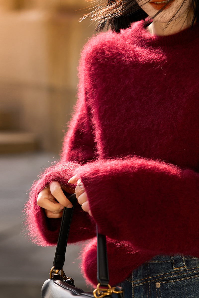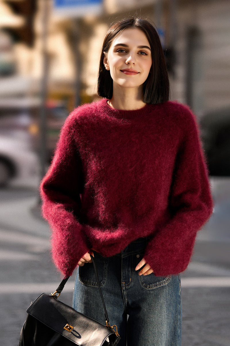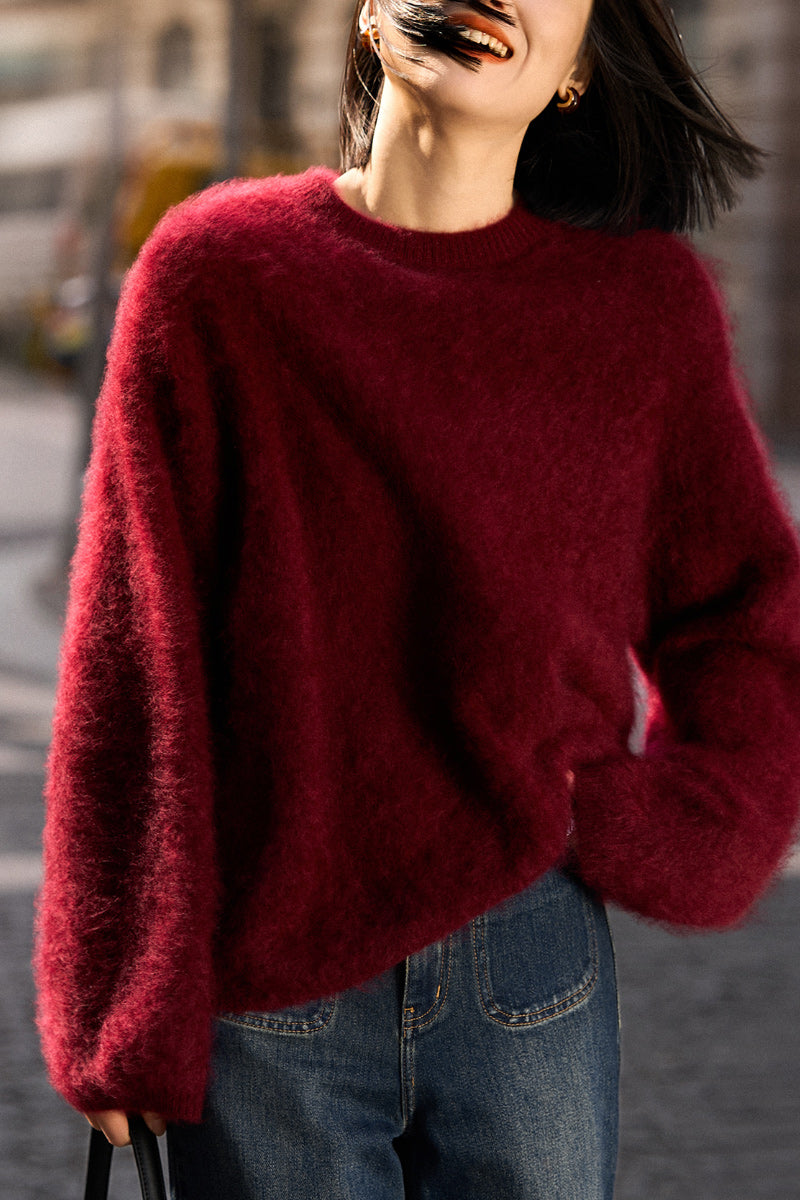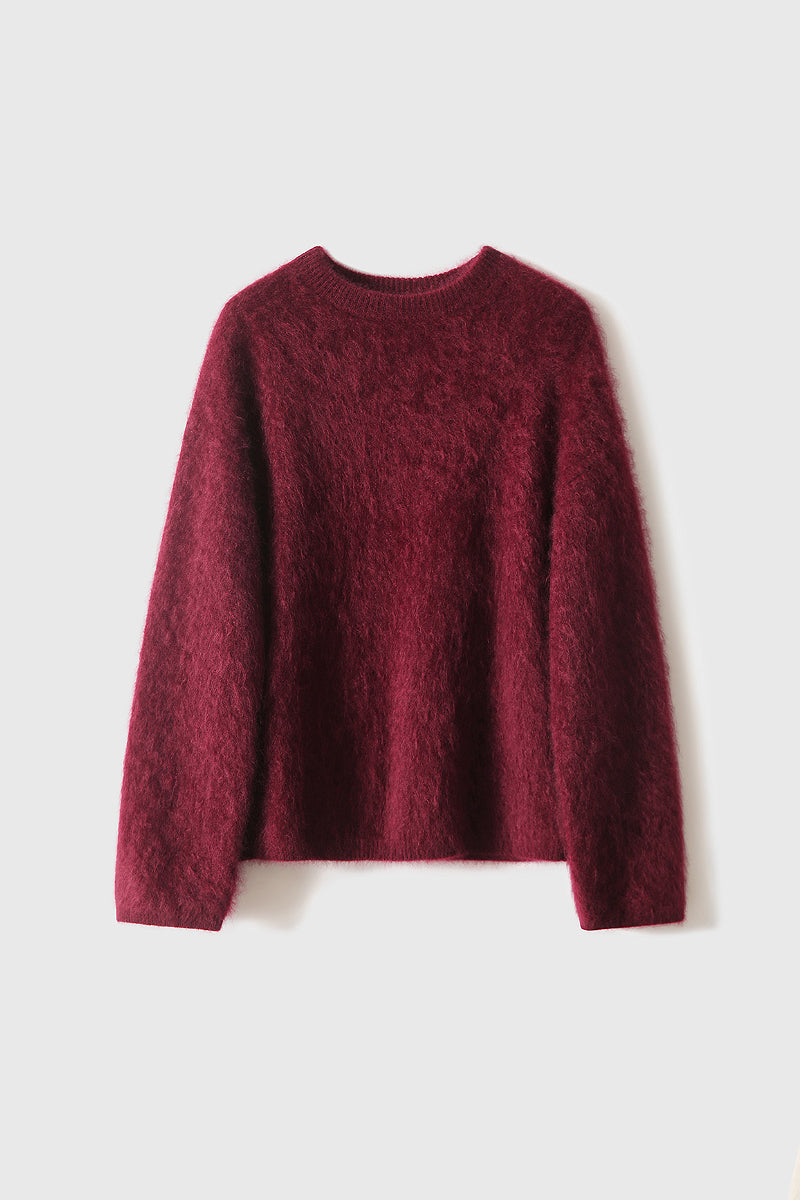 Wrap yourself in the gentle embrace of our Italian Brushed Cashmere Drop-Shoulder Crewneck Sweater. Made from 100% cashmere, this red cashmere sweater feels like a soft cloud against your skin. Its oversized design effortlessly complements any outfit, making it perfect for cozy evenings at home or stylish city strolls. Experience unparalleled warmth and sophistication in every moment.