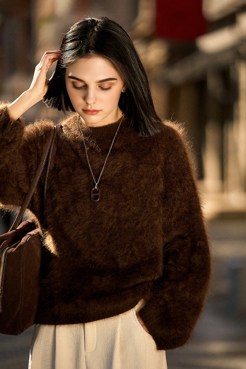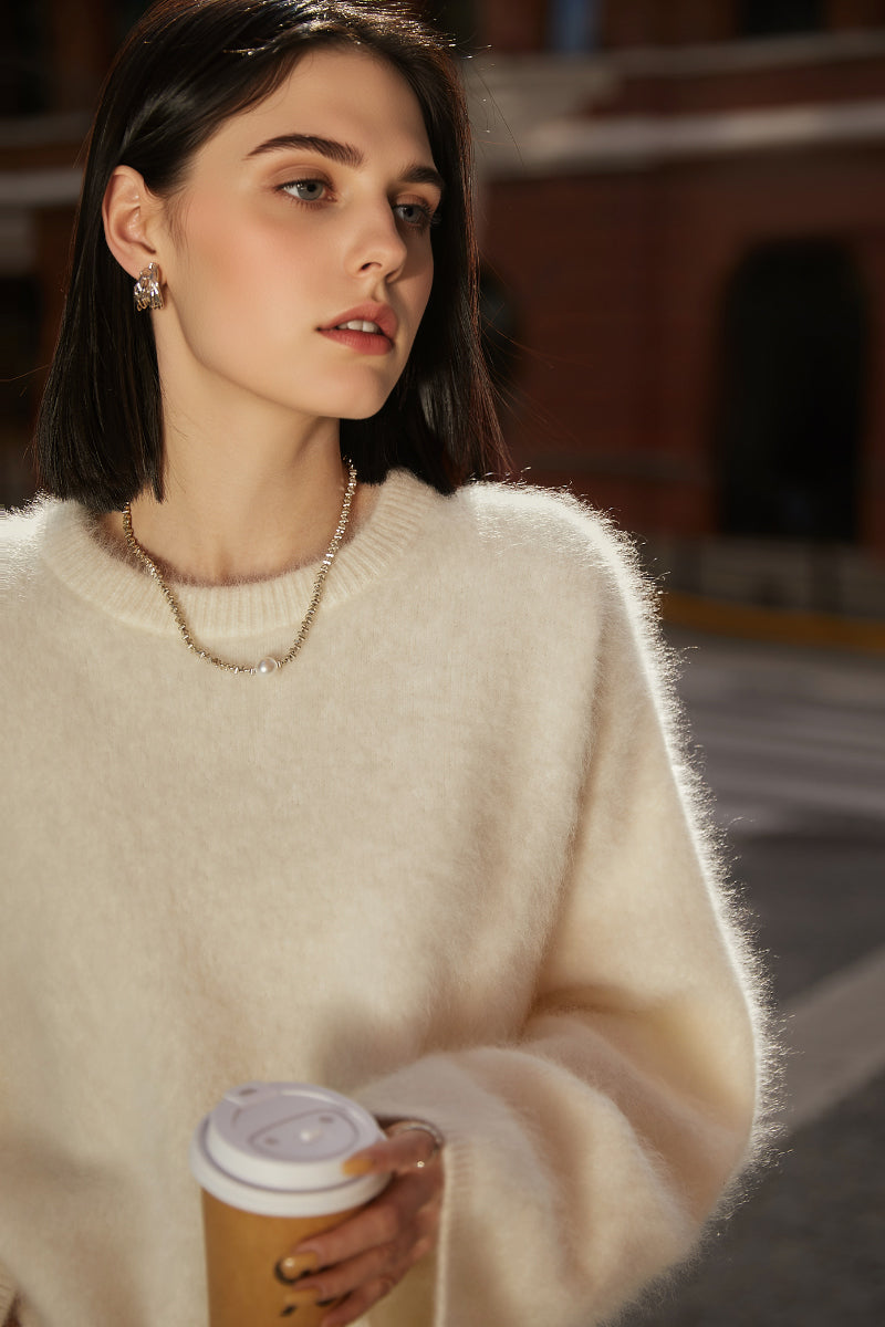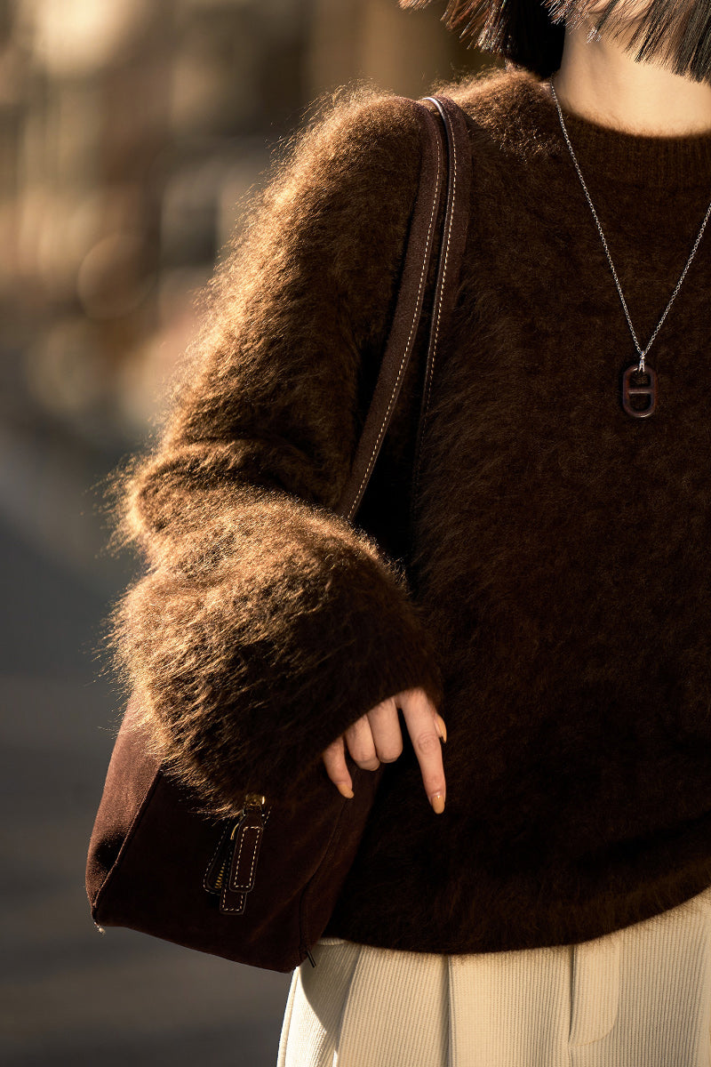 Italian-Made Brushed Cashmere Crewneck Sweater