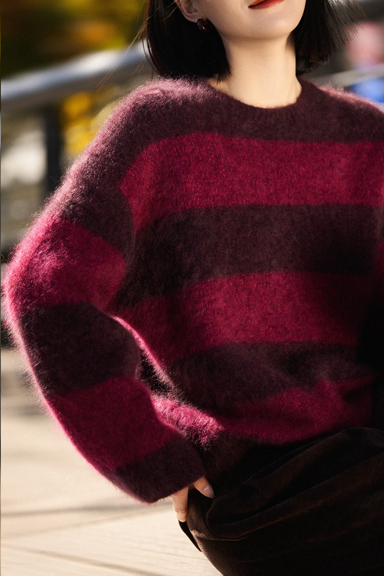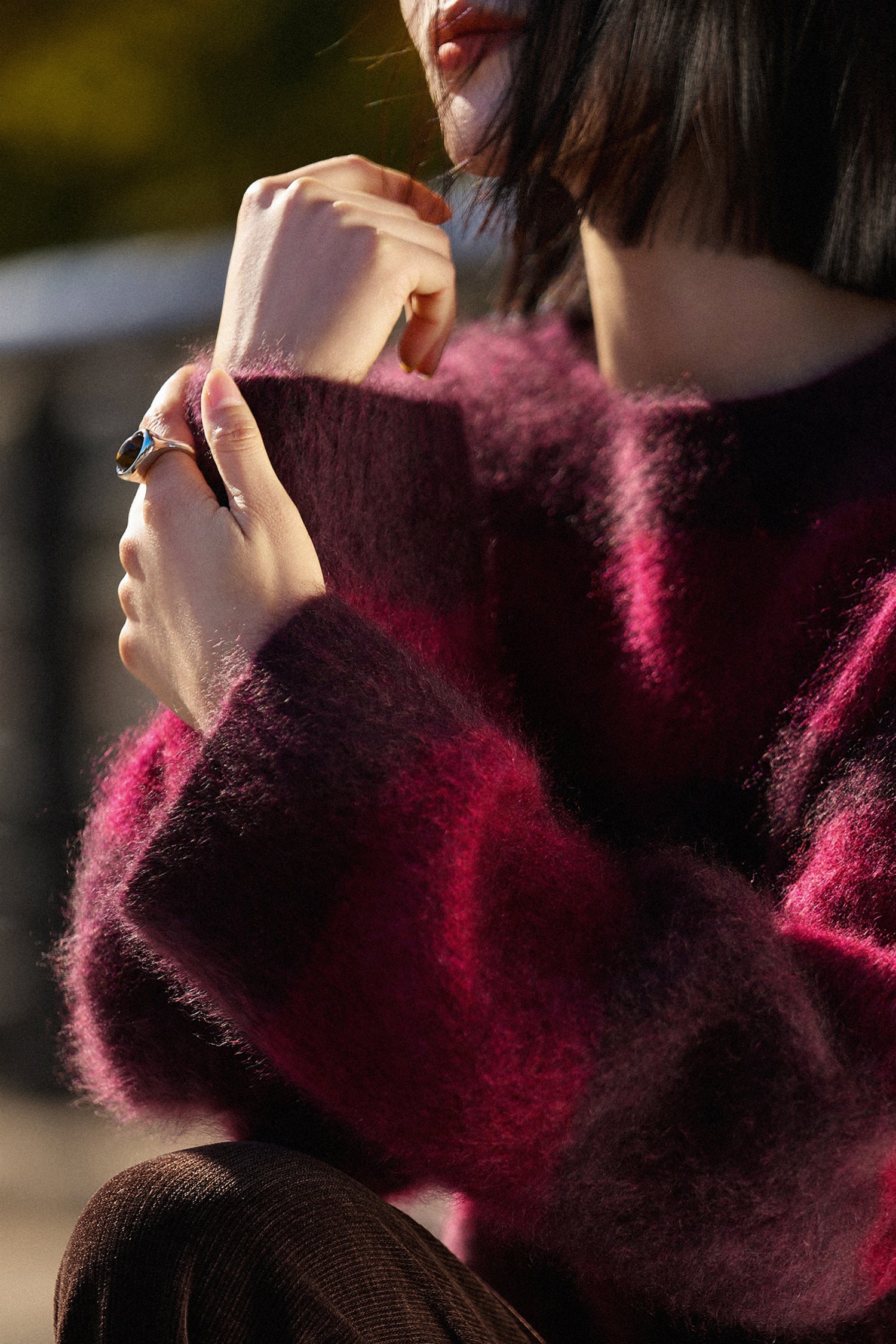 Soft presence, rich color. A brushed cashmere sweater made for winter light and holiday evenings.