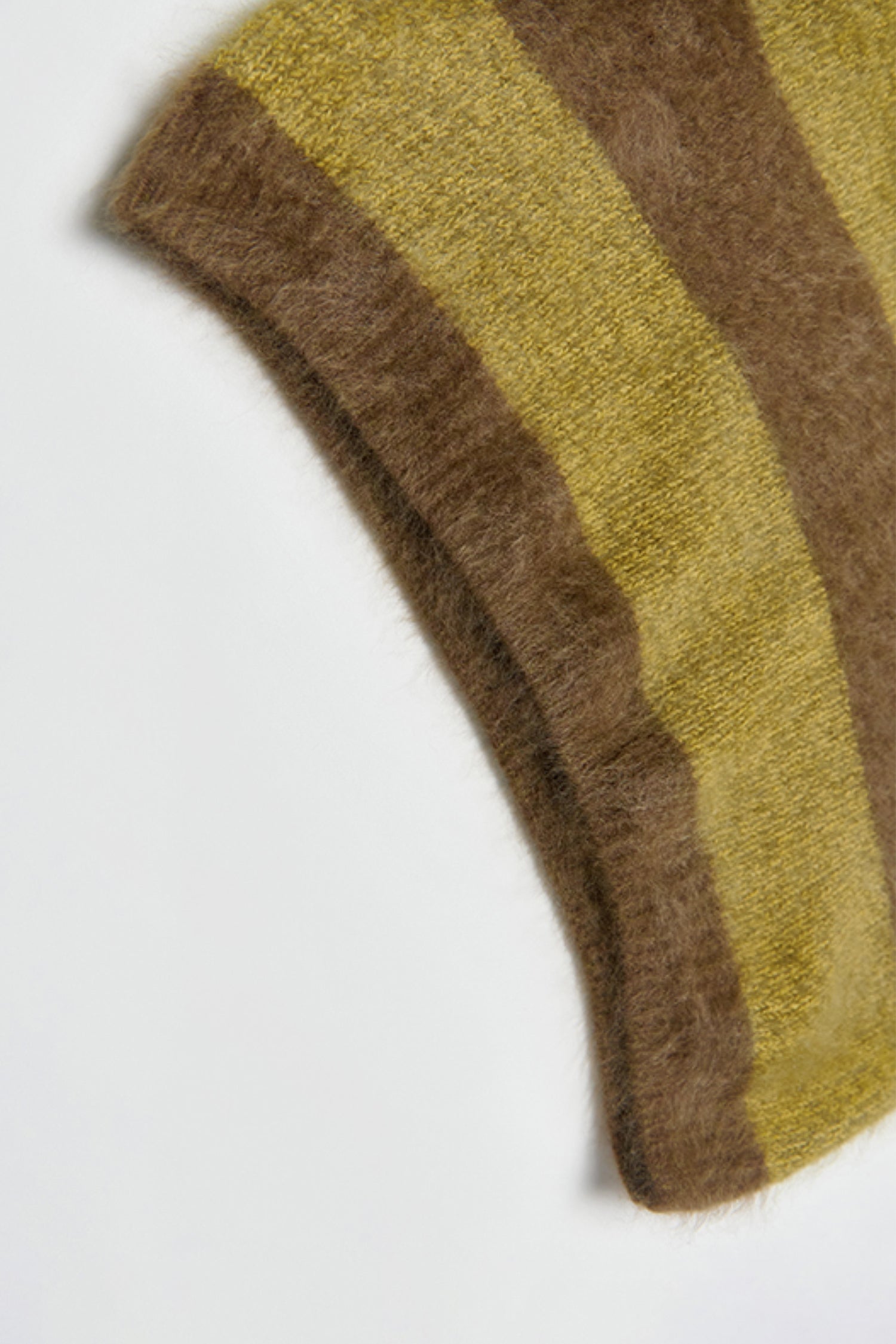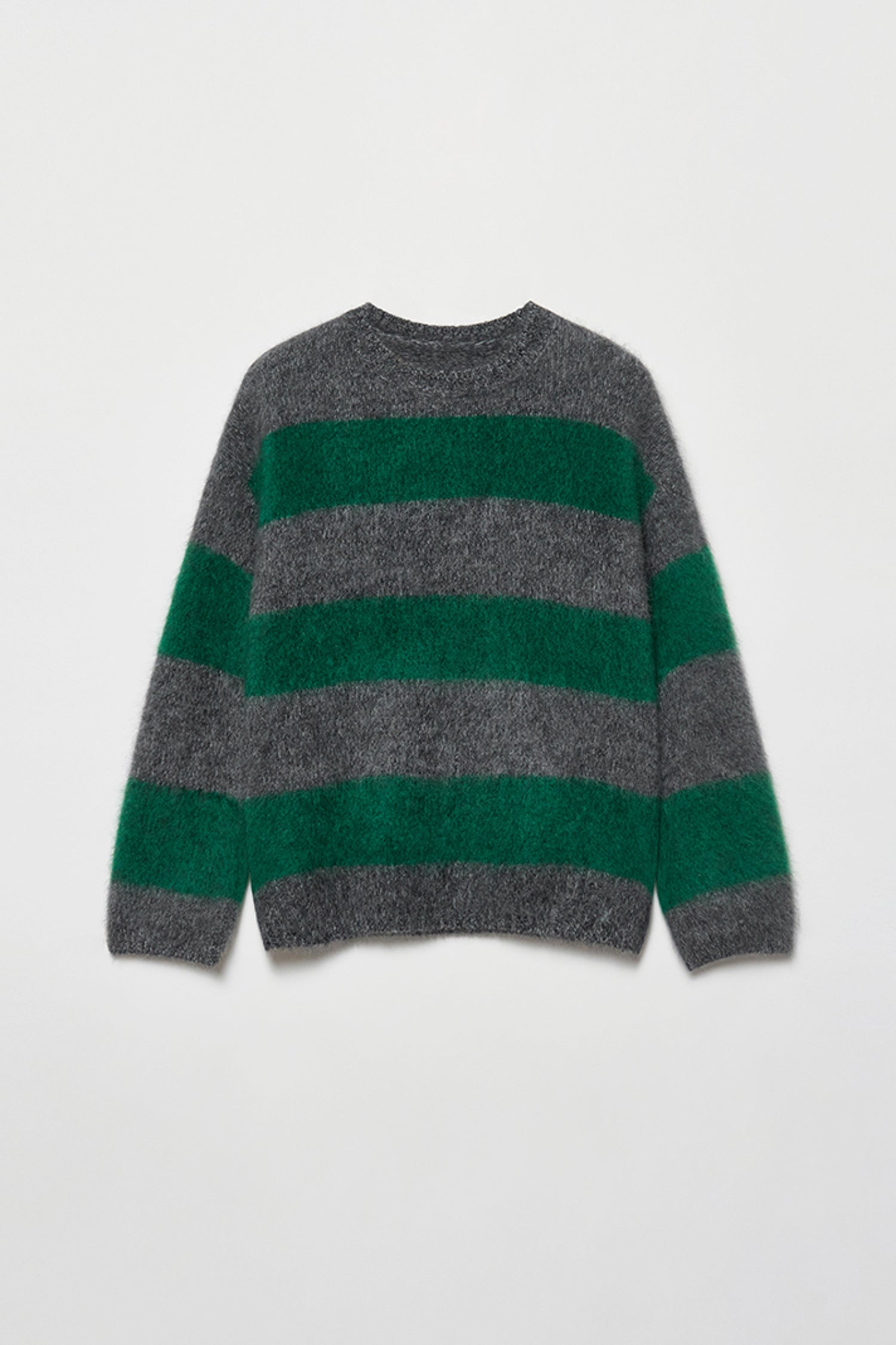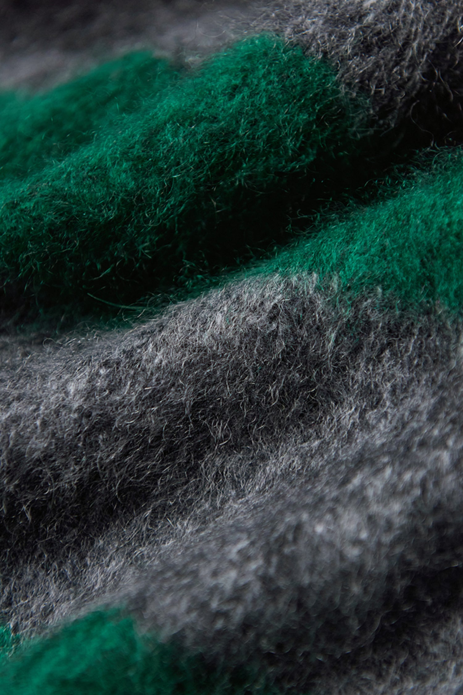 The 327g cashmere undergoes an advanced long-fur brushing and pure-water wash, creating a plush halo that sits between knitwear and shearling—airy, warm, and unmistakably luxurious.Its green-and-grey stripes echo the contrast of evergreen forests and frost-lit mornings. Pair it with soft tailoring or winter denim to capture that understated holiday ease—warmth without weight, elegance without effort.
