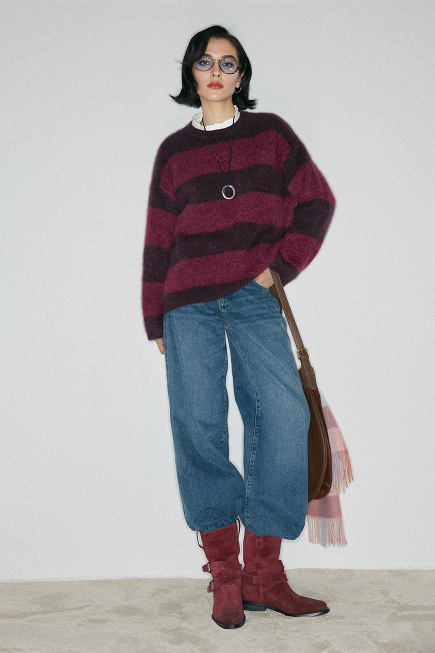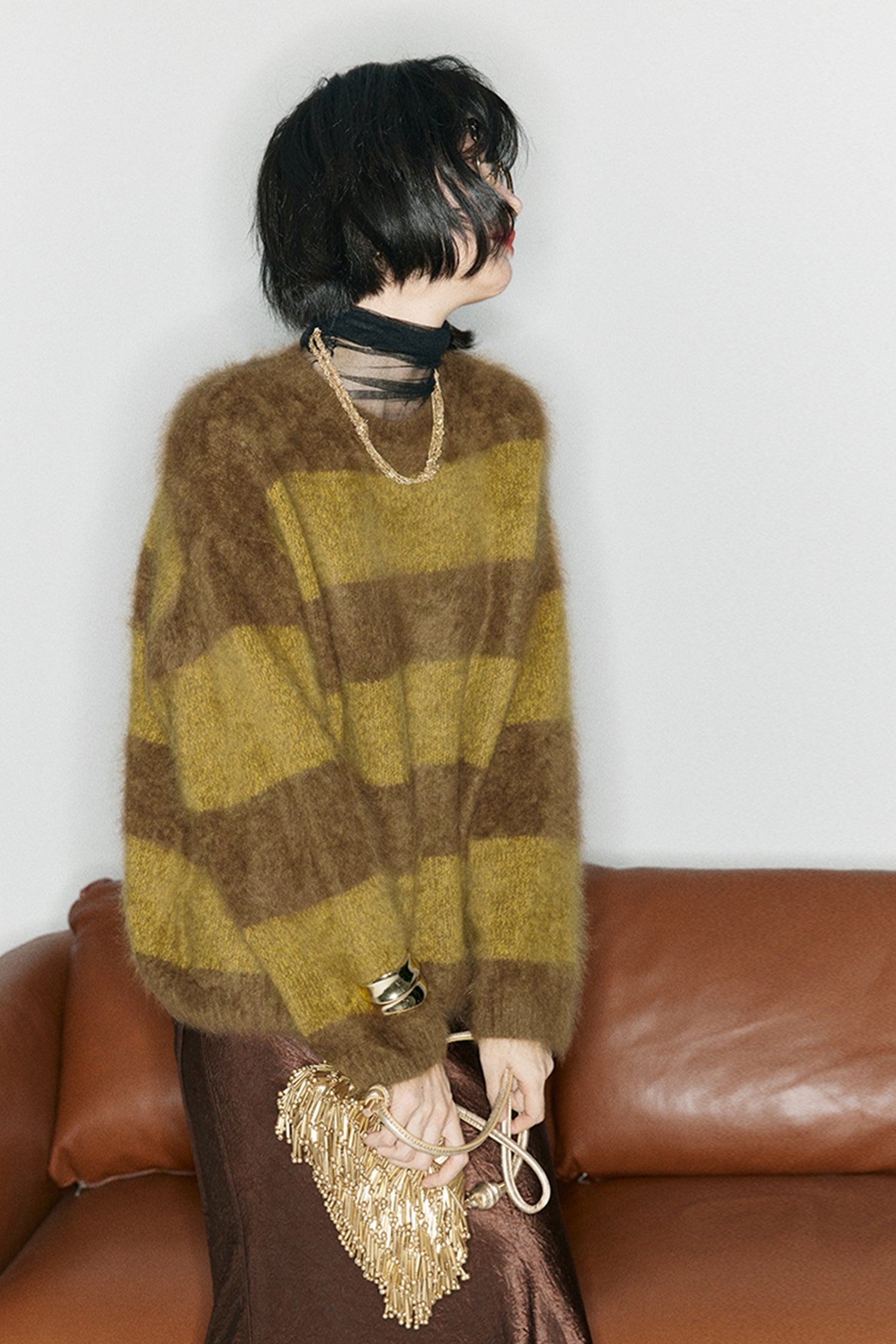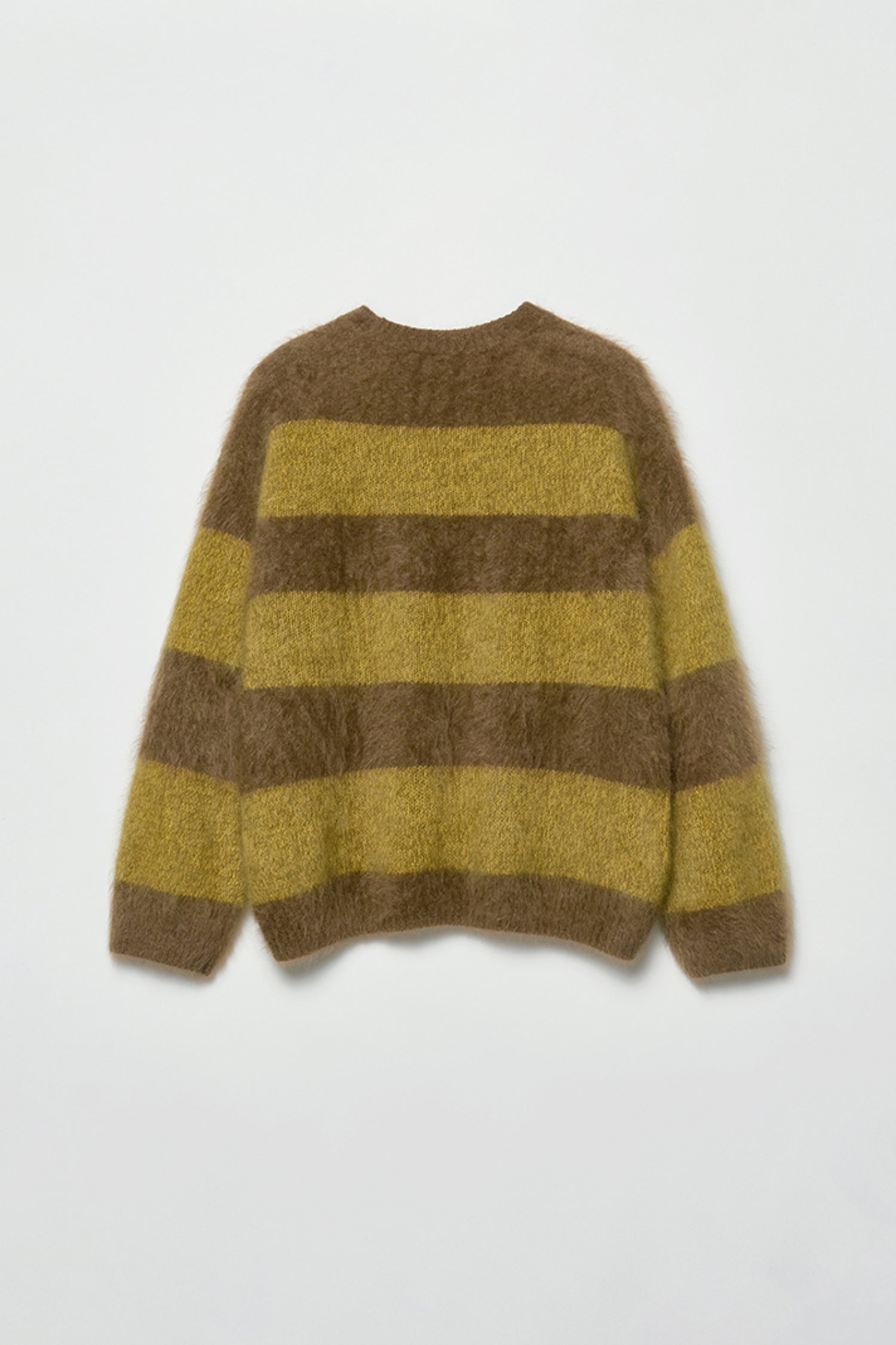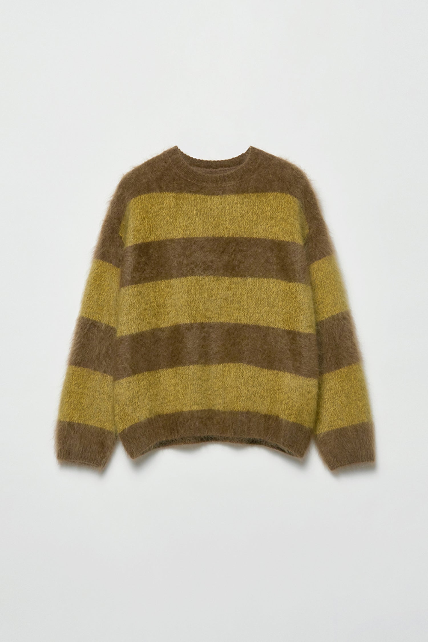 The 327g cashmere undergoes an advanced long-fur brushing and pure-water wash, creating a plush halo that sits between knitwear and shearling—airy, warm, and unmistakably luxurious.Its green-and-grey stripes echo the contrast of evergreen forests and frost-lit mornings. Pair it with soft tailoring or winter denim to capture that understated holiday ease—warmth without weight, elegance without effort.
