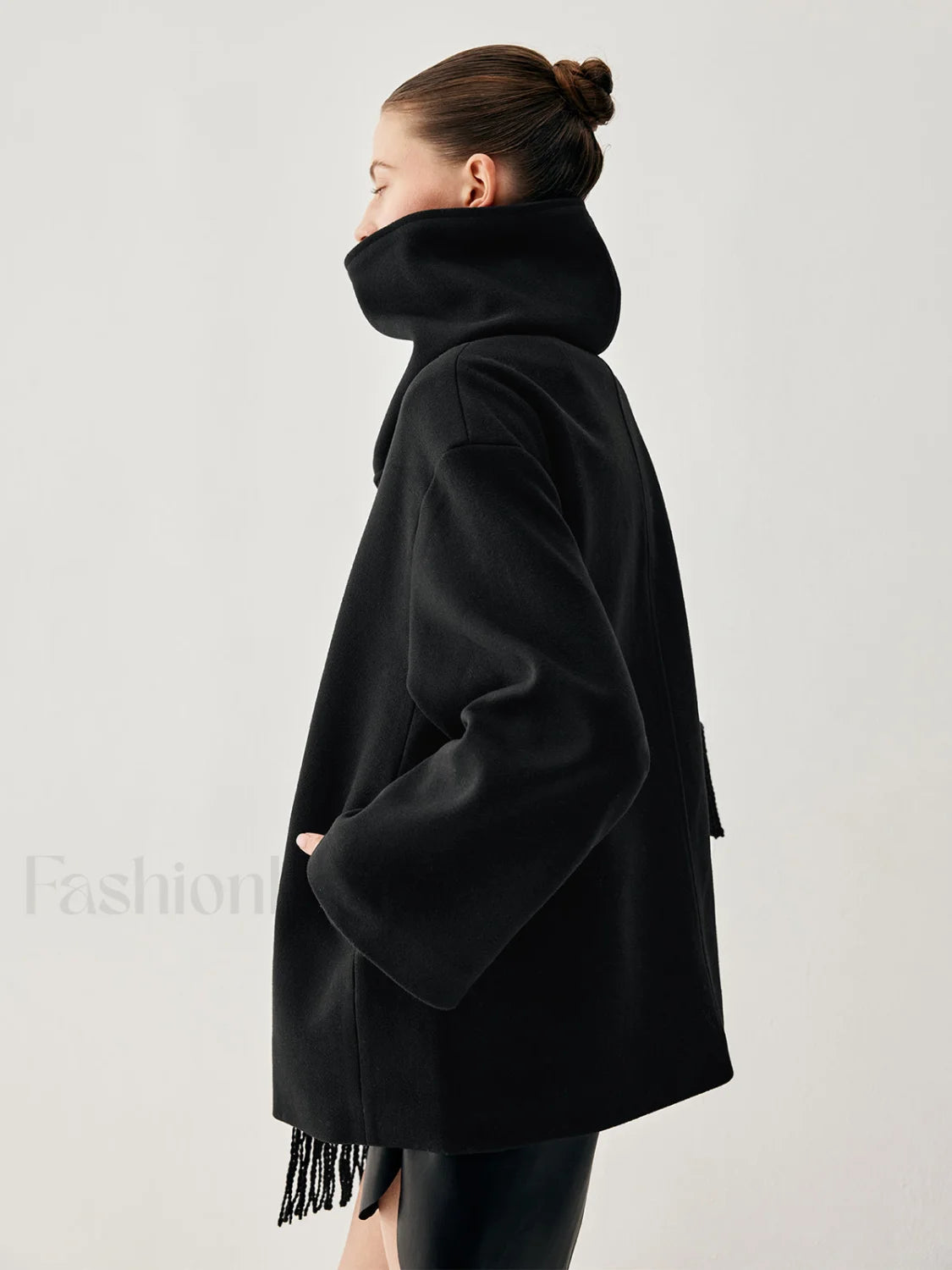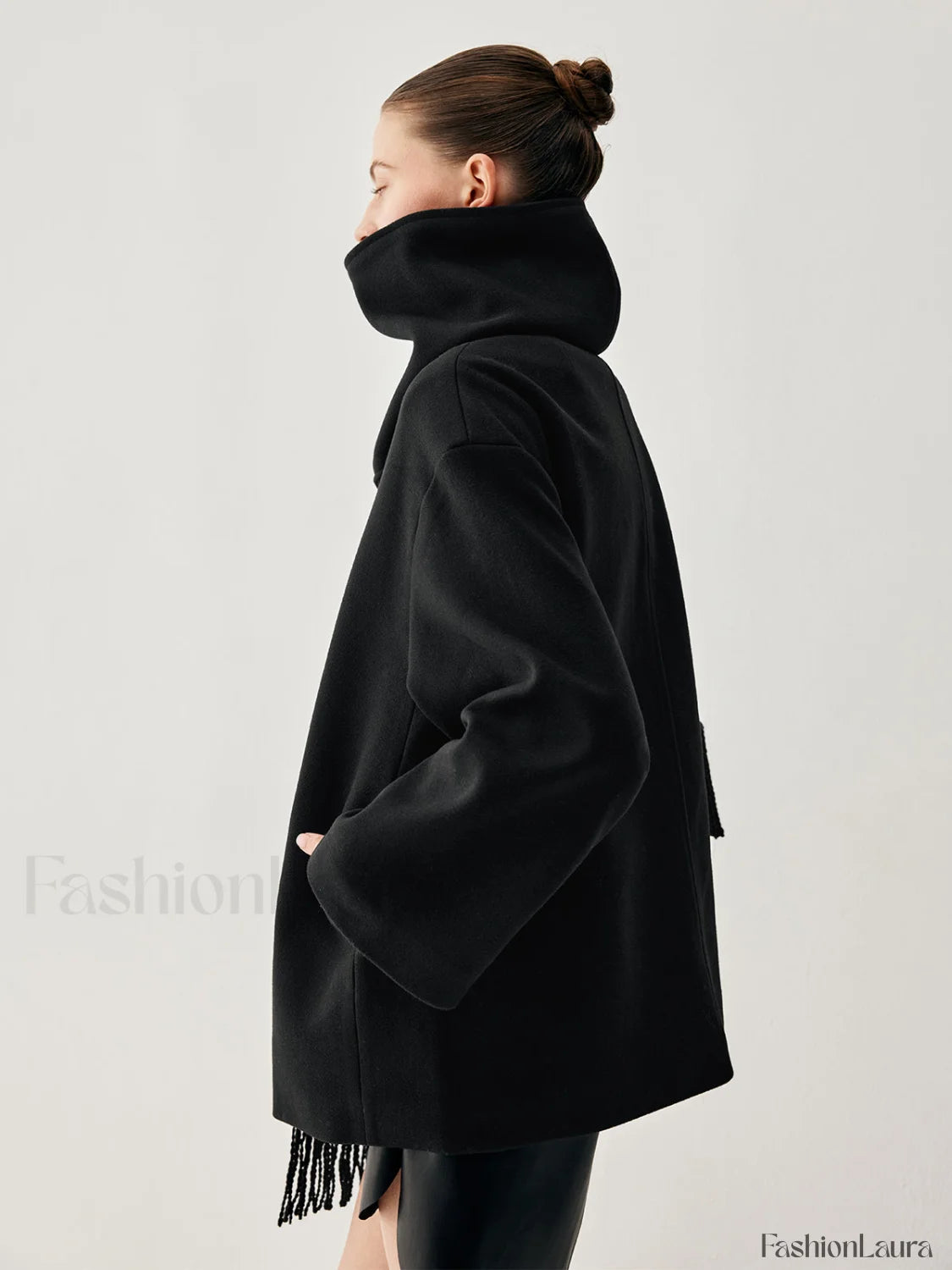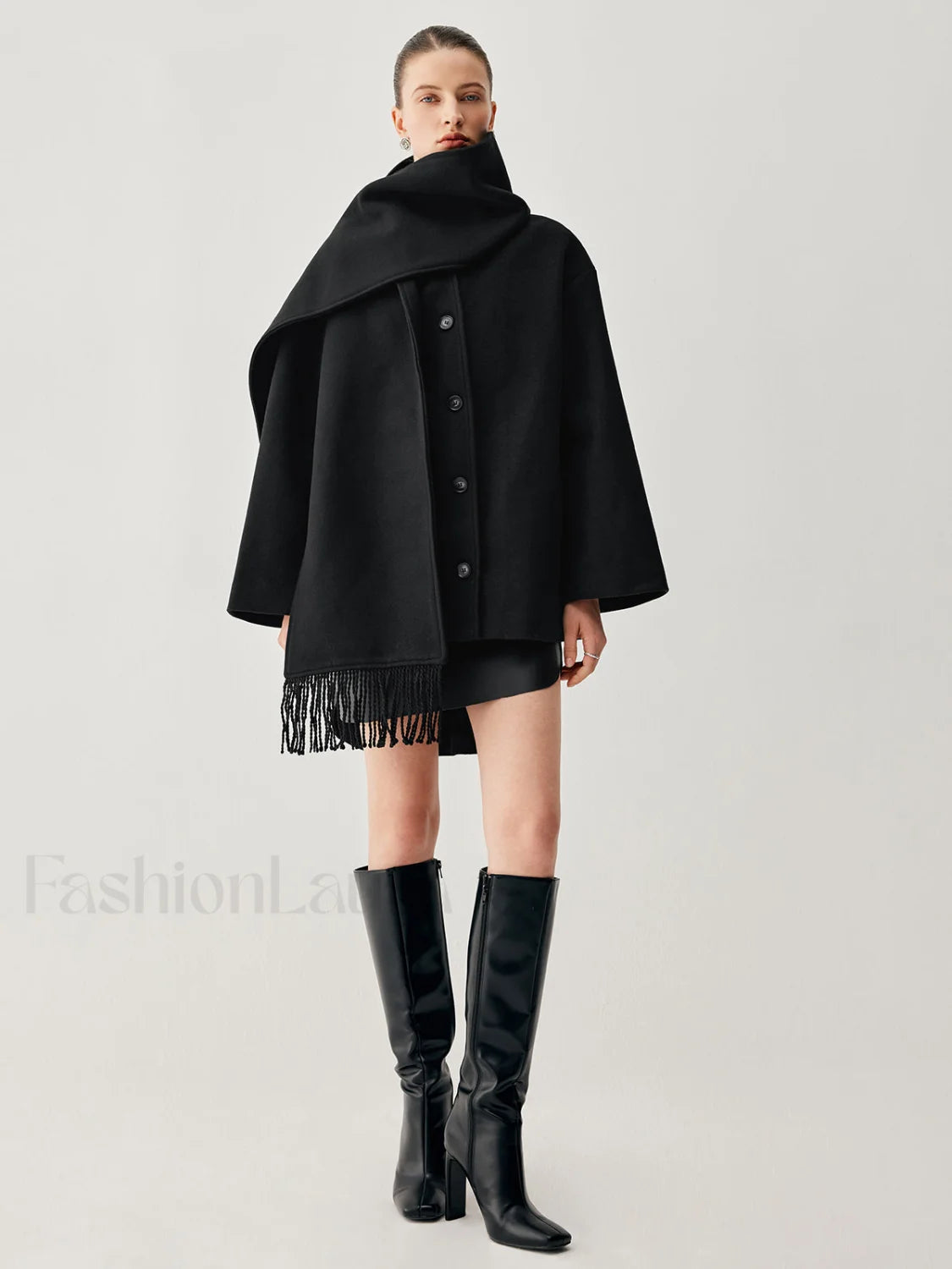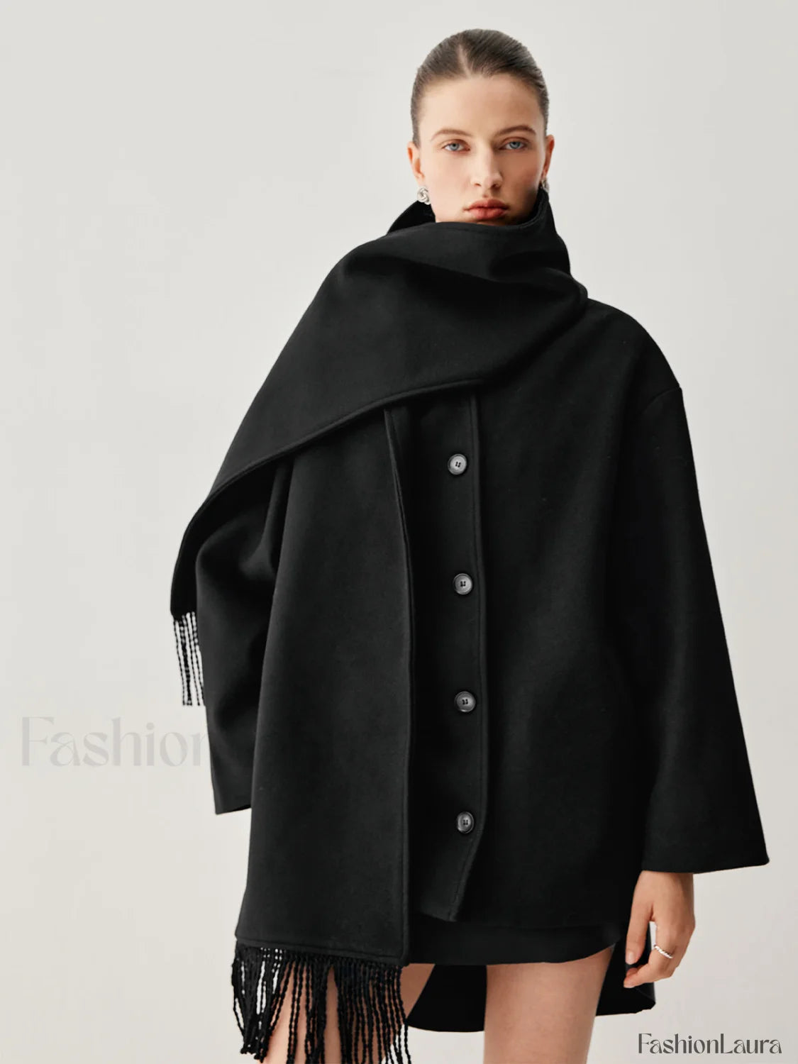 • Oversized Button-down Wool Coat Modern with Matching Fringed Scarf