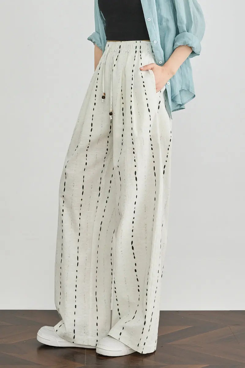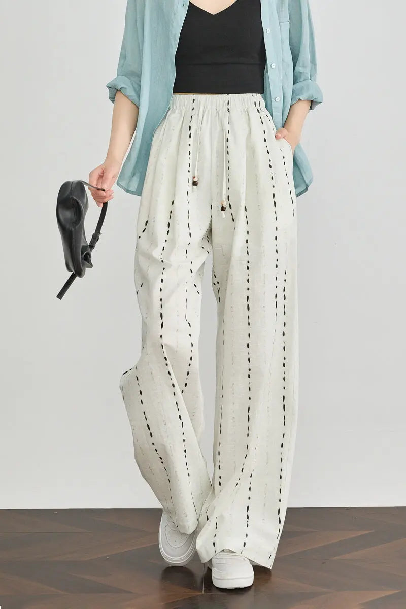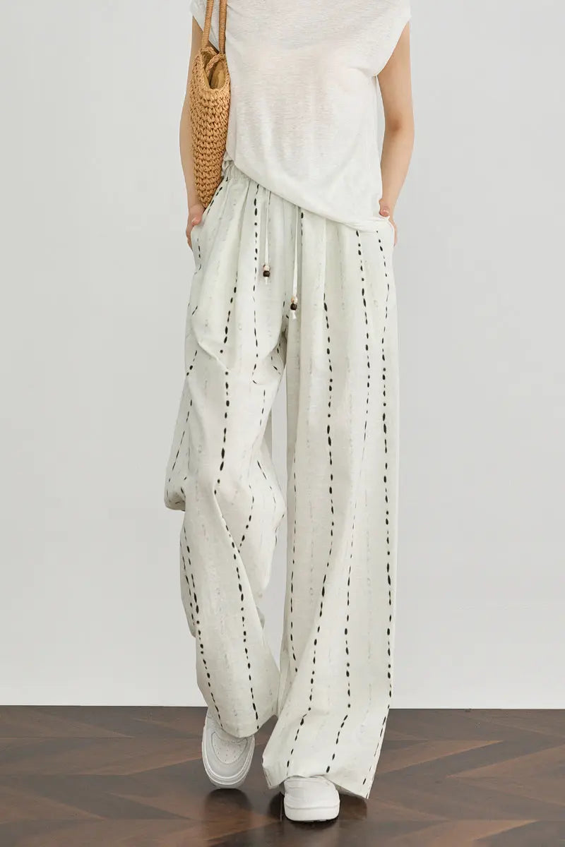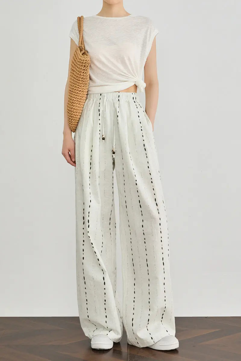 • 100 European Linen Striped Wide-Leg Drawstring Pants