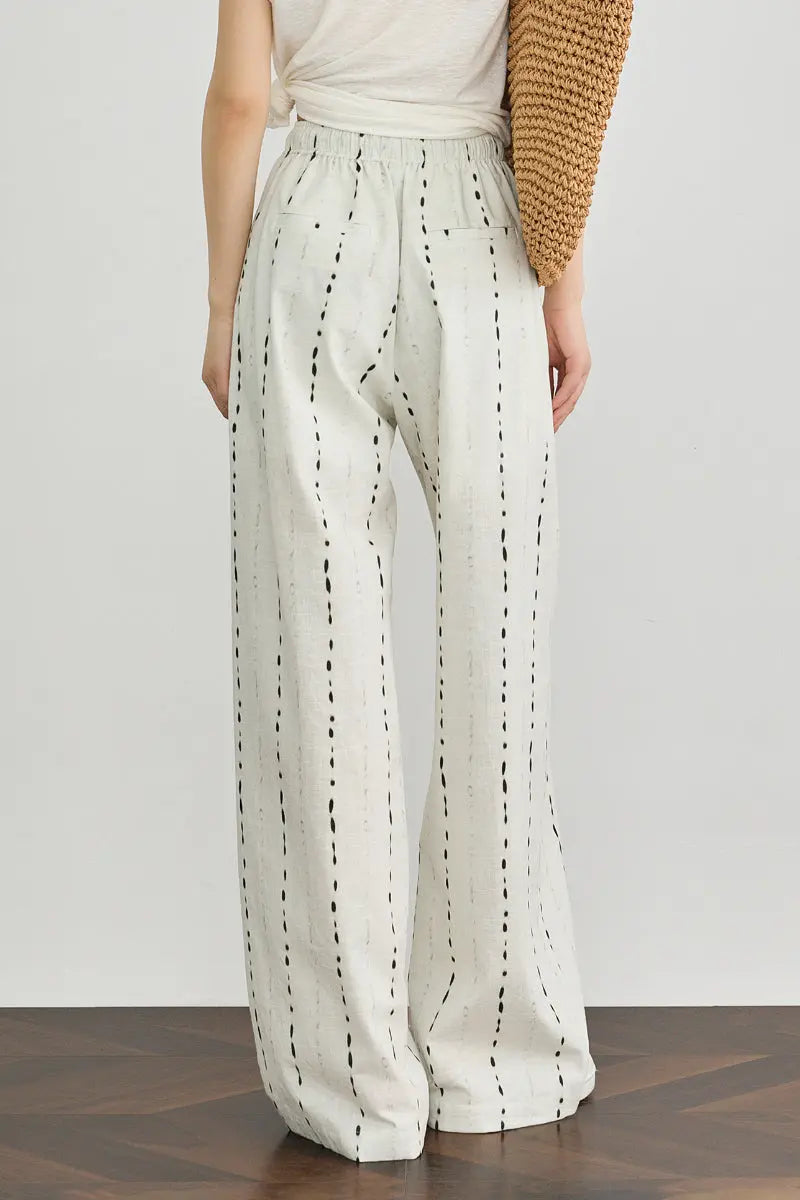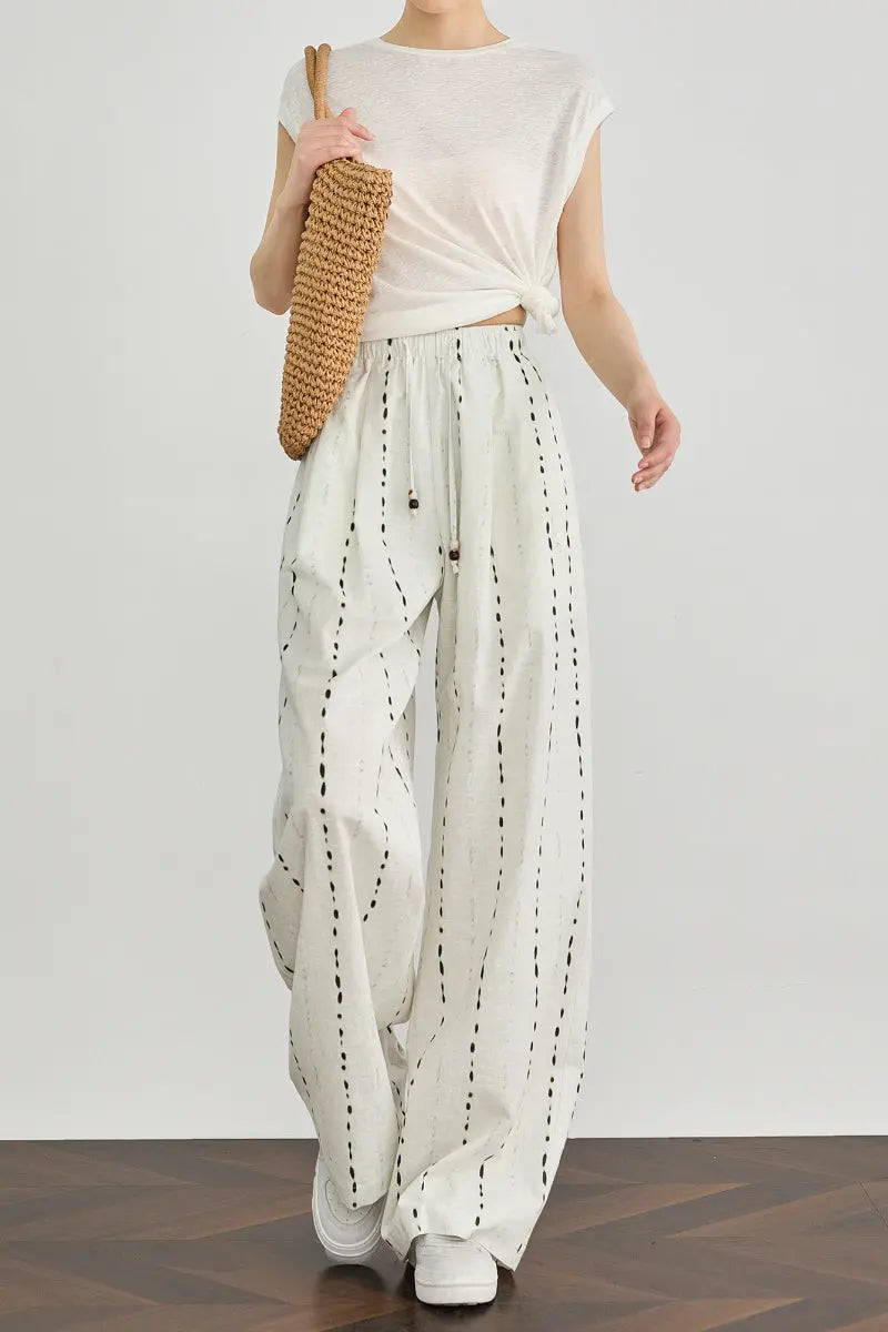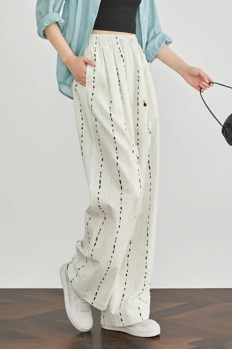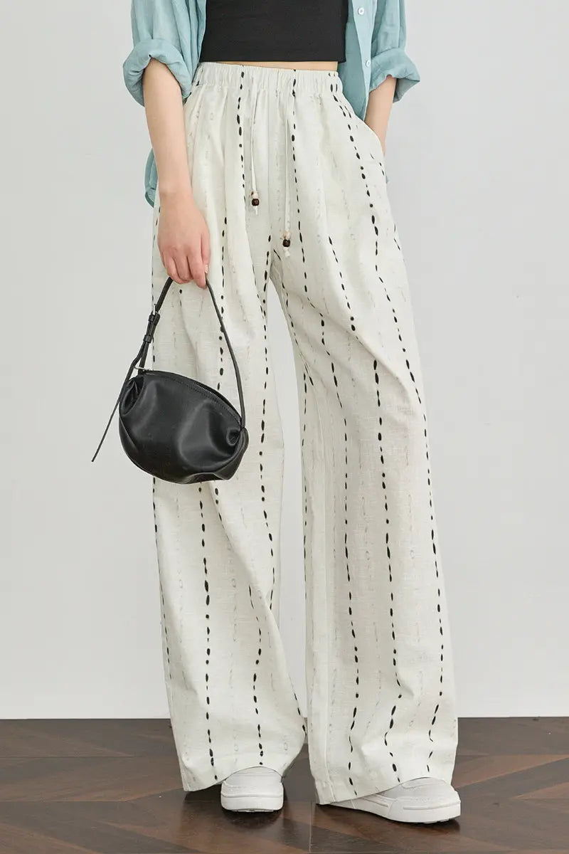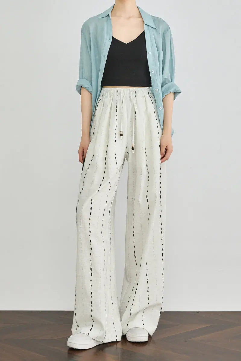 • 100 European Linen Striped Wide-Leg Drawstring Pants