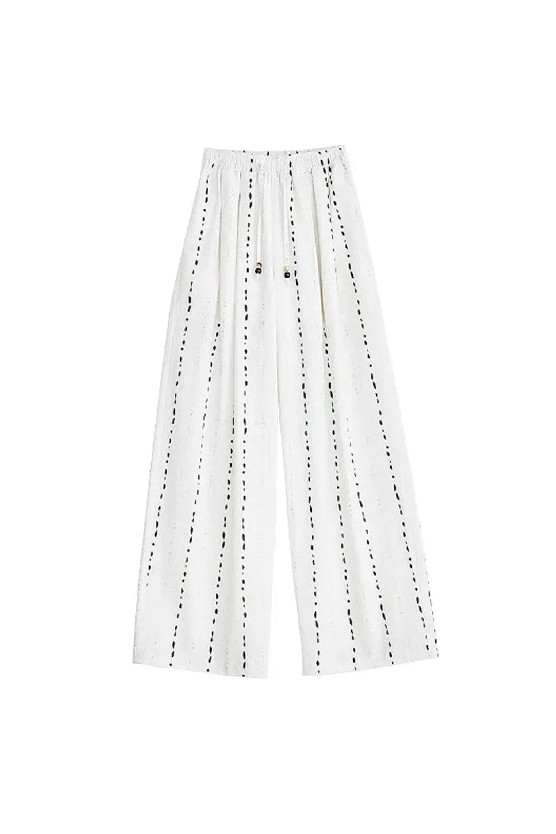 100 European Linen Striped Wide-Leg Drawstring Pants