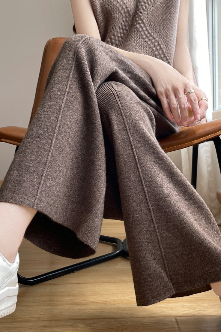 • Waist Type: High Waist• Clothing Type: Straight Pants• Composition: Wool• Details: Solid Color