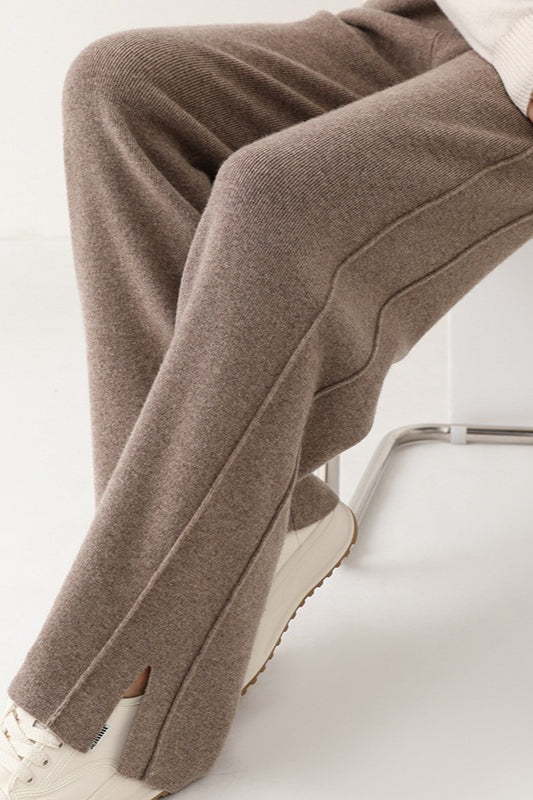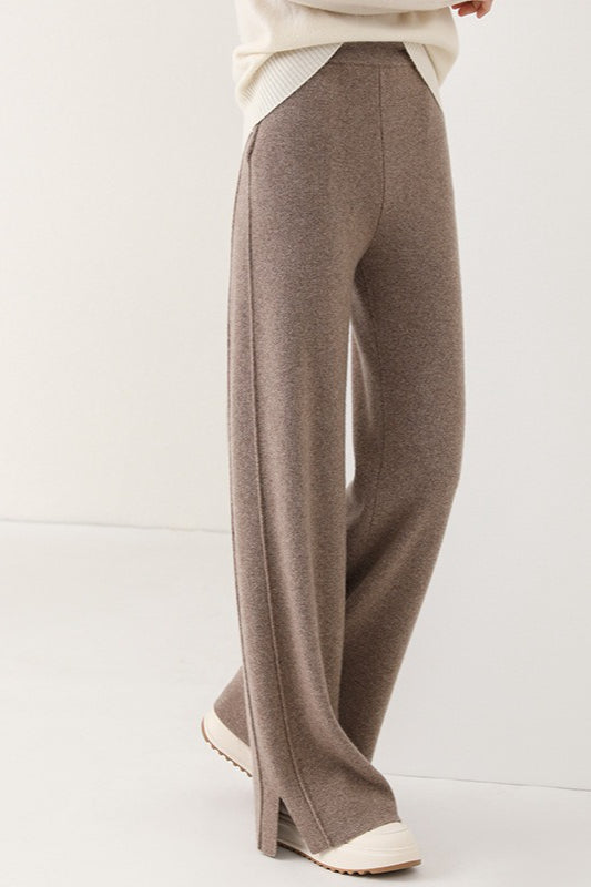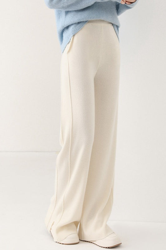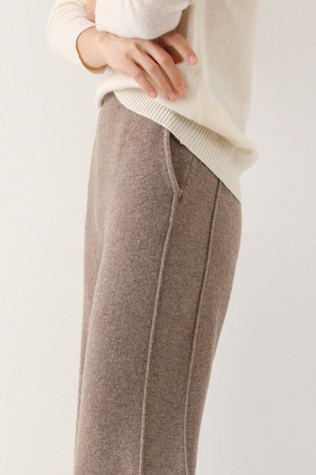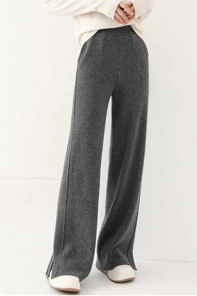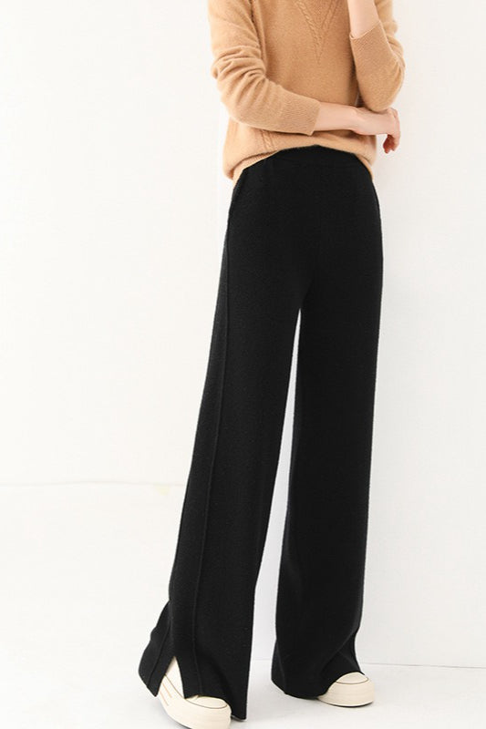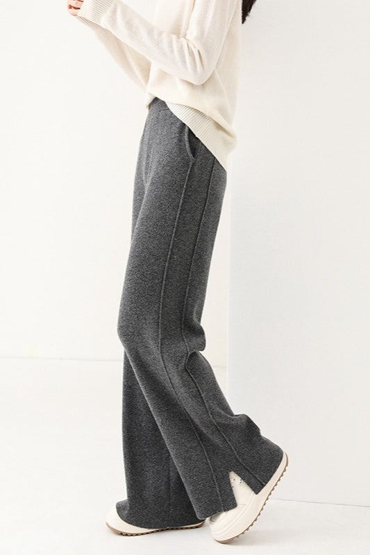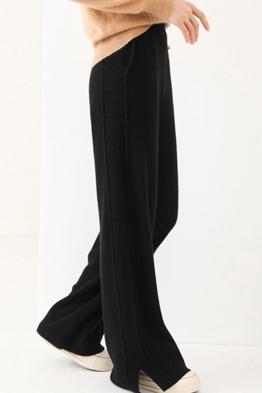 • Waist Type: Elastic Waist• Clothing Type: Straight Pants• Composition: Wool• Details: Solid Color