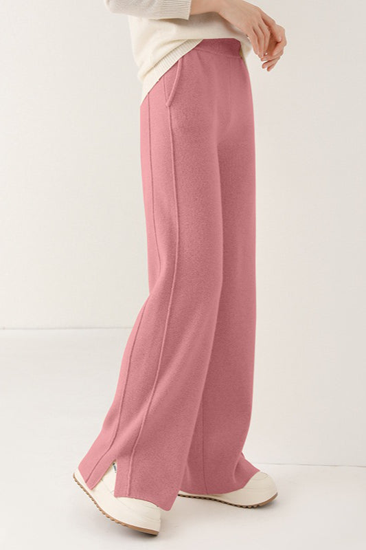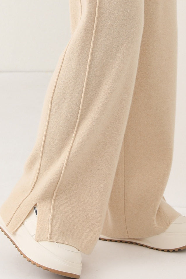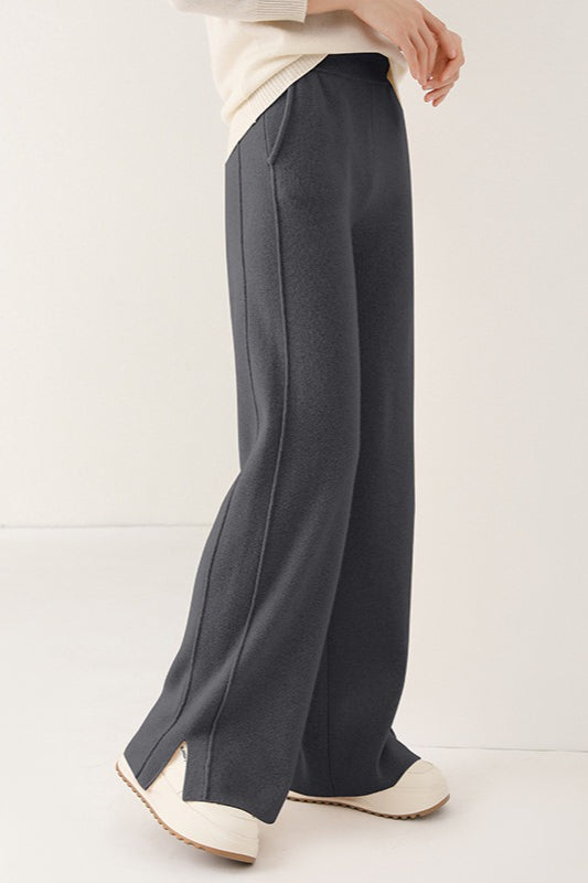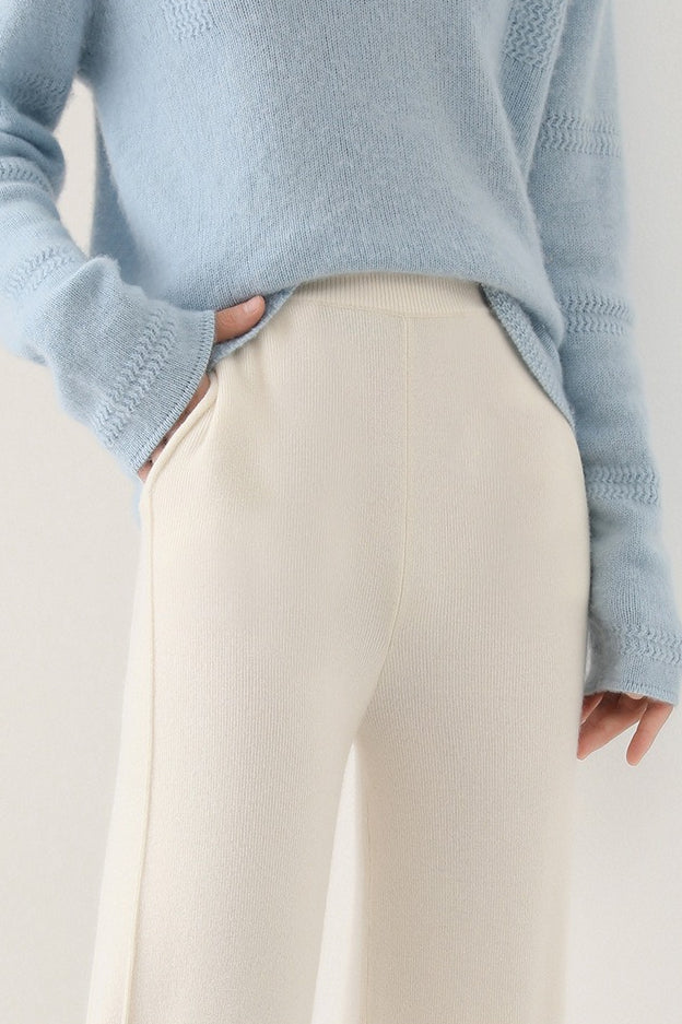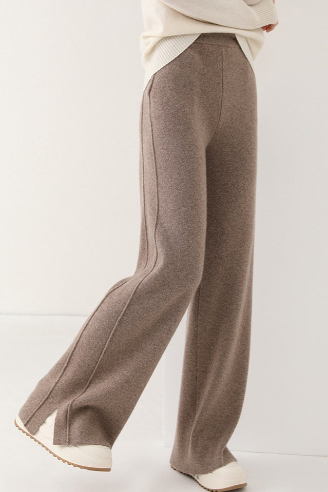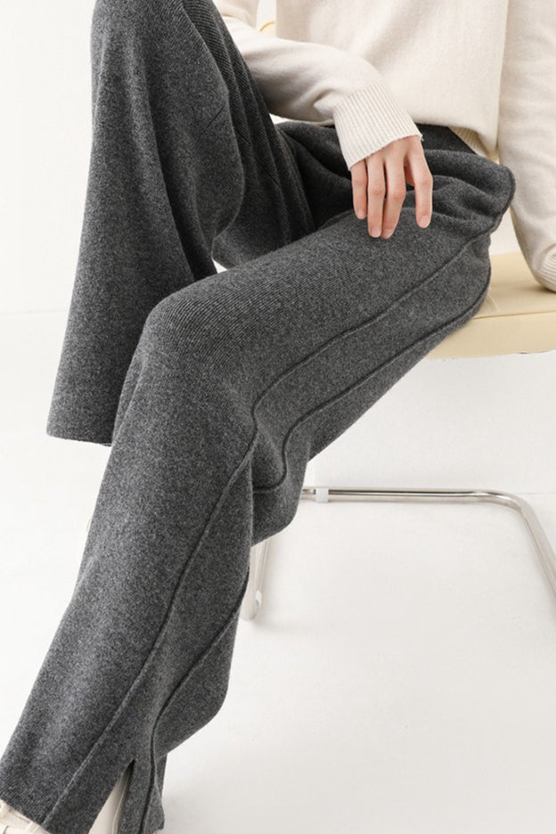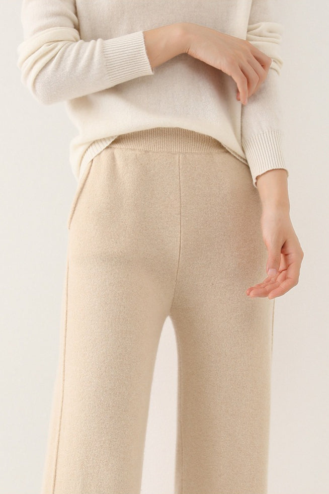 • Waist Type: Elastic Waist• Clothing Type: Straight Pants• Composition: Wool• Details: Solid Color