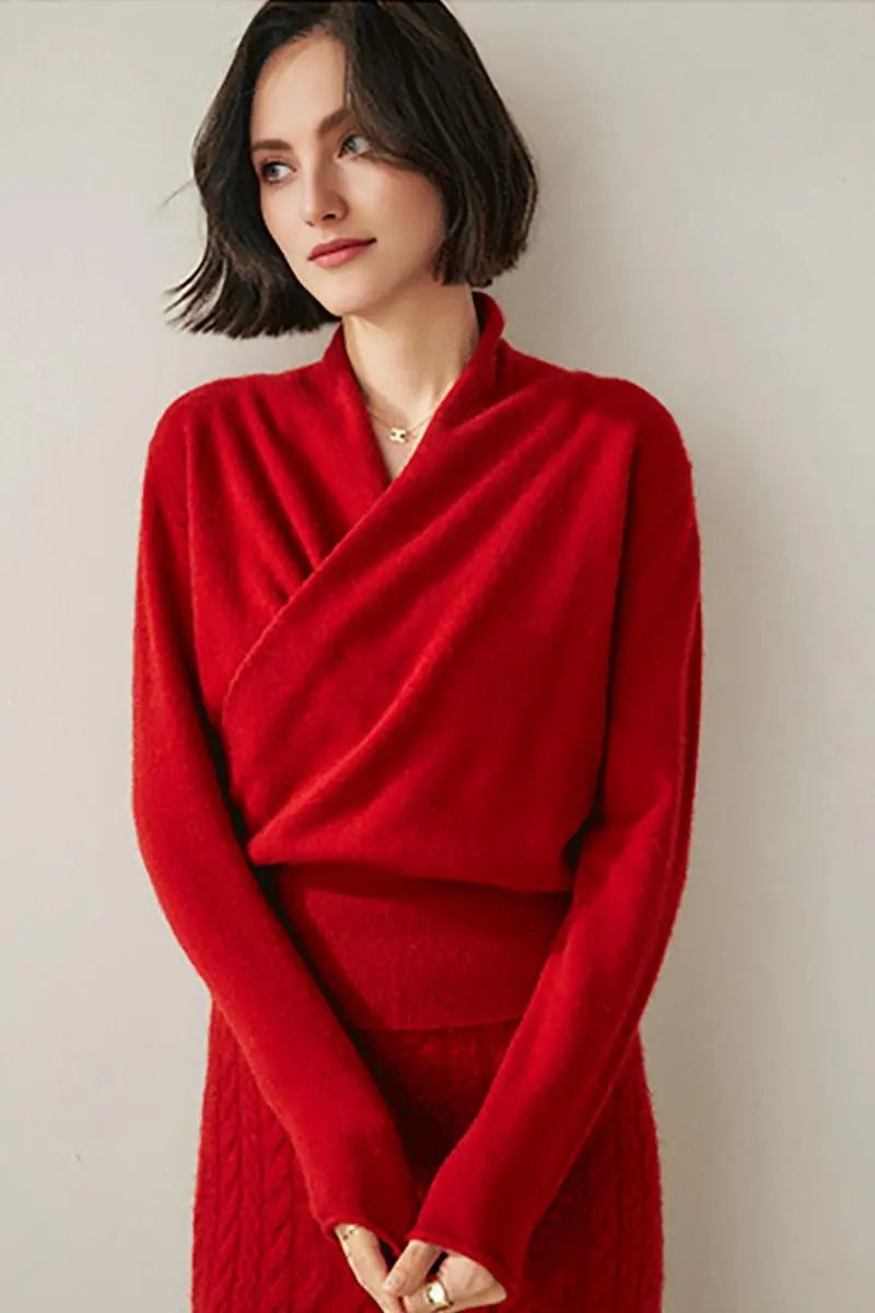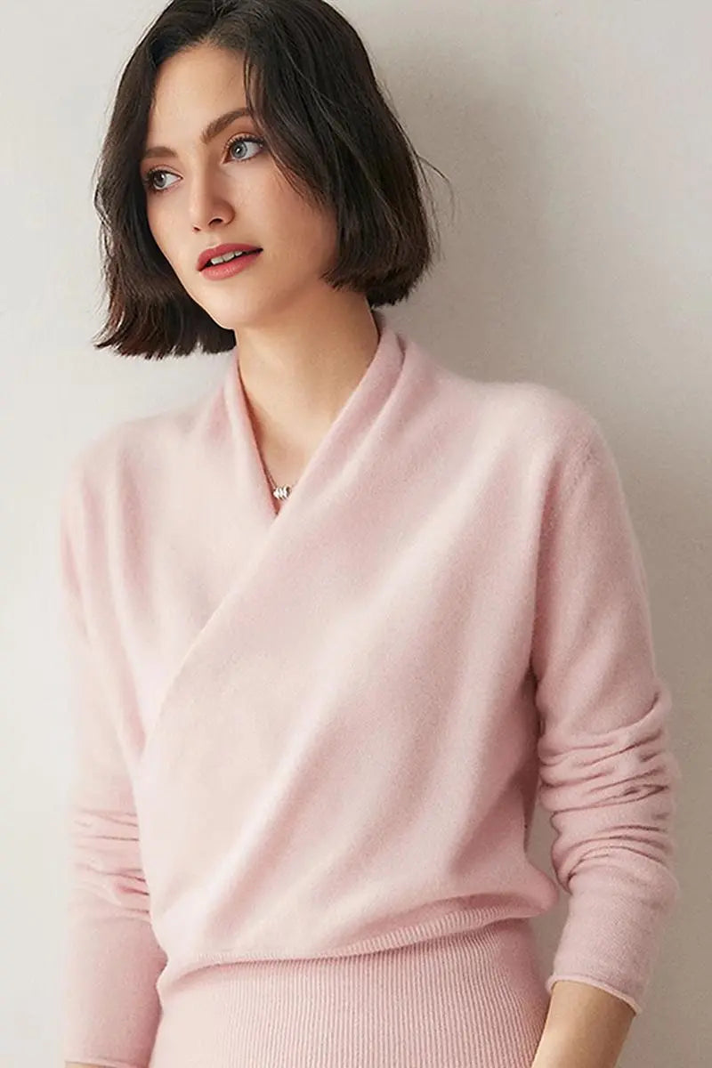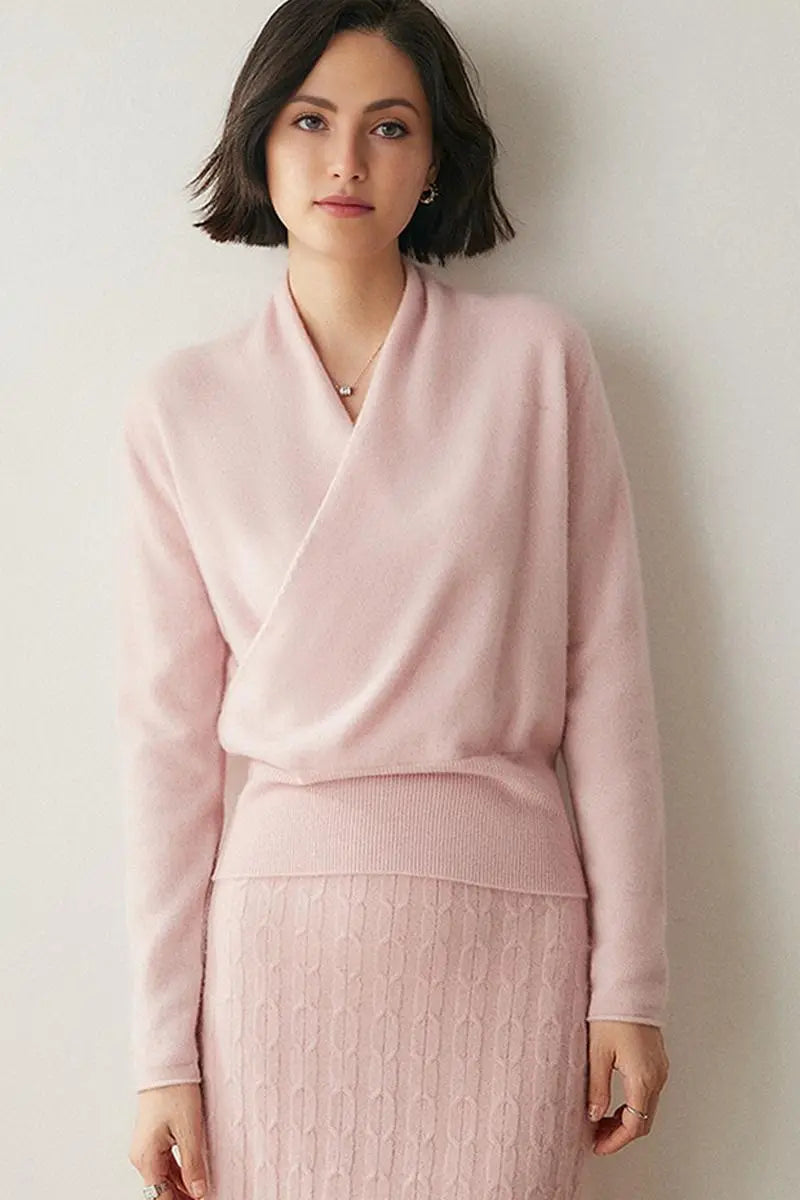 The 100 cashmere sweater combines luxury and style in a refined v neck sweater design. Made from 100% cashmere, it features a flattering faux-wrap front and ribbed hem. Lightweight and ultra-soft, this cashmere v-neck sweater women's offers comfort and sophistication for any occasion.