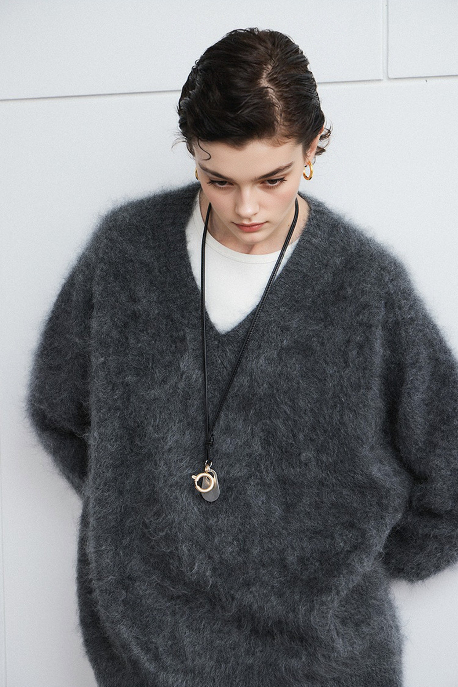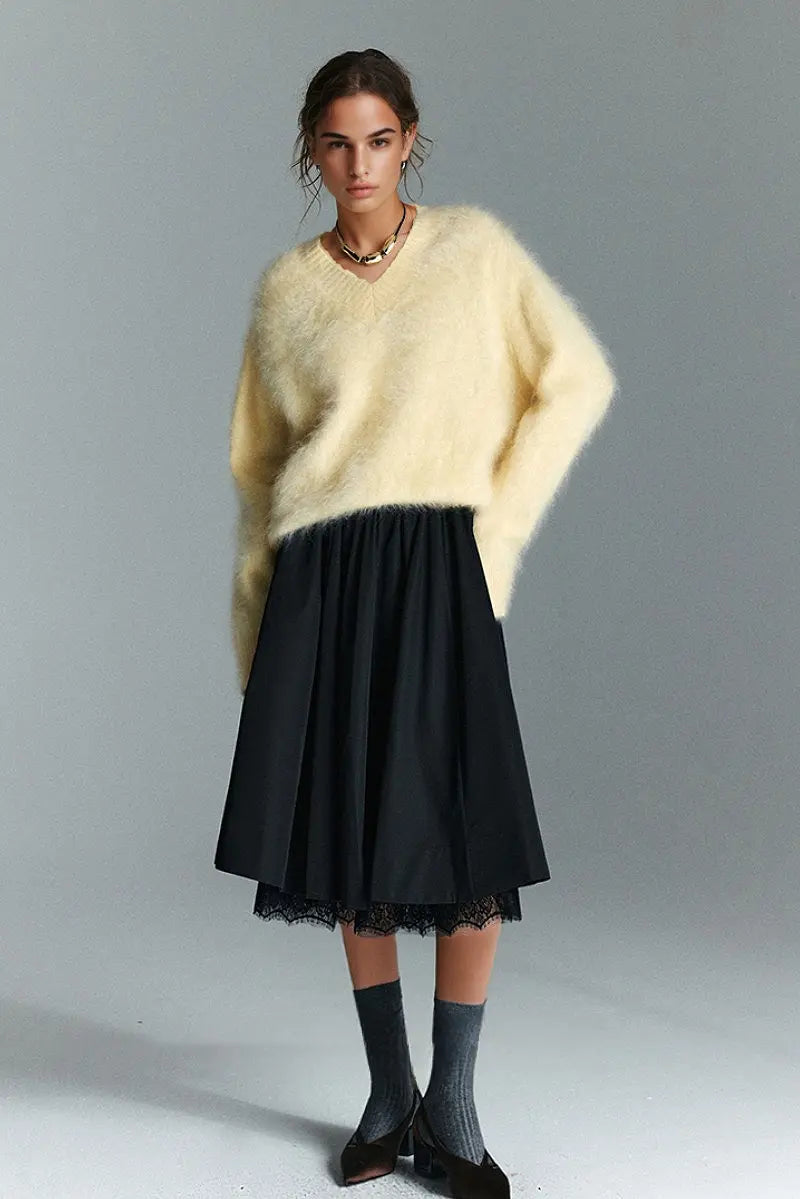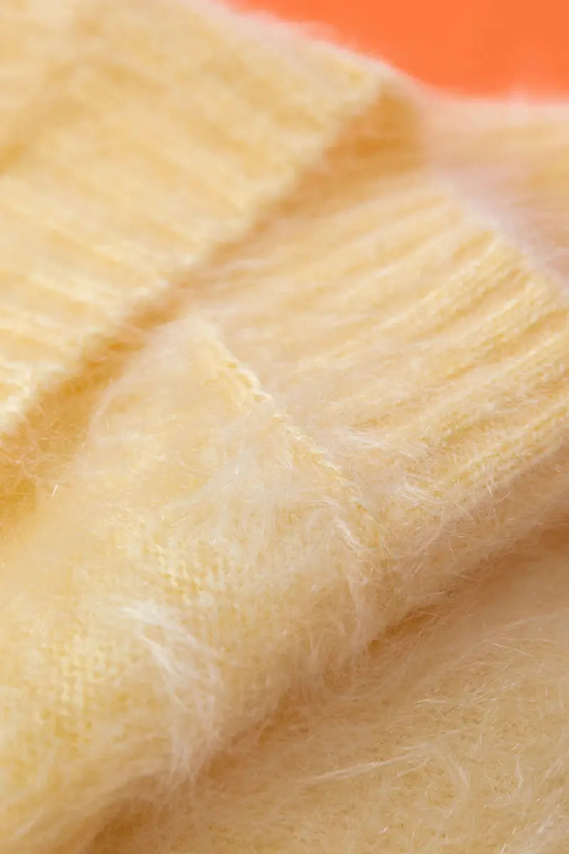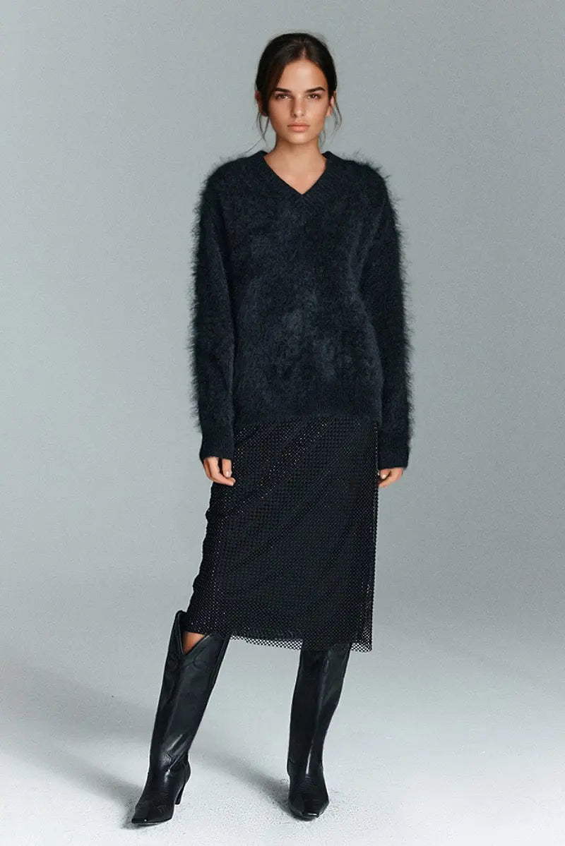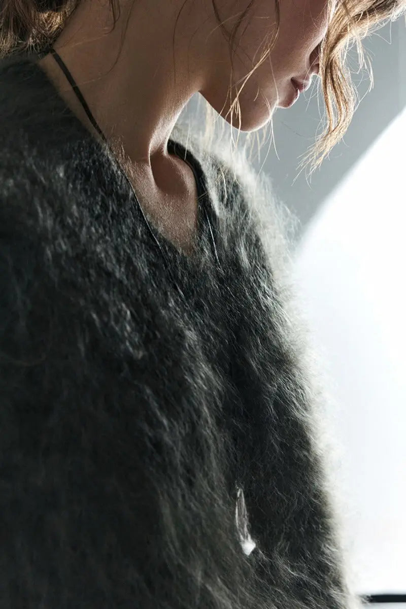 Indulge in the warmth of this chunky brushed cashmere sweater, crafted for effortless elegance and unmatched softness. The relaxed V-neck design and cozy silhouette make it an ideal layer for any occasion.