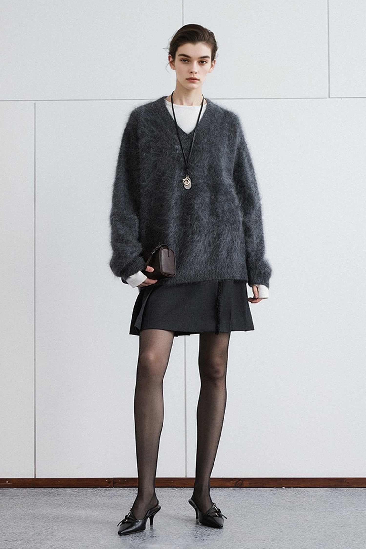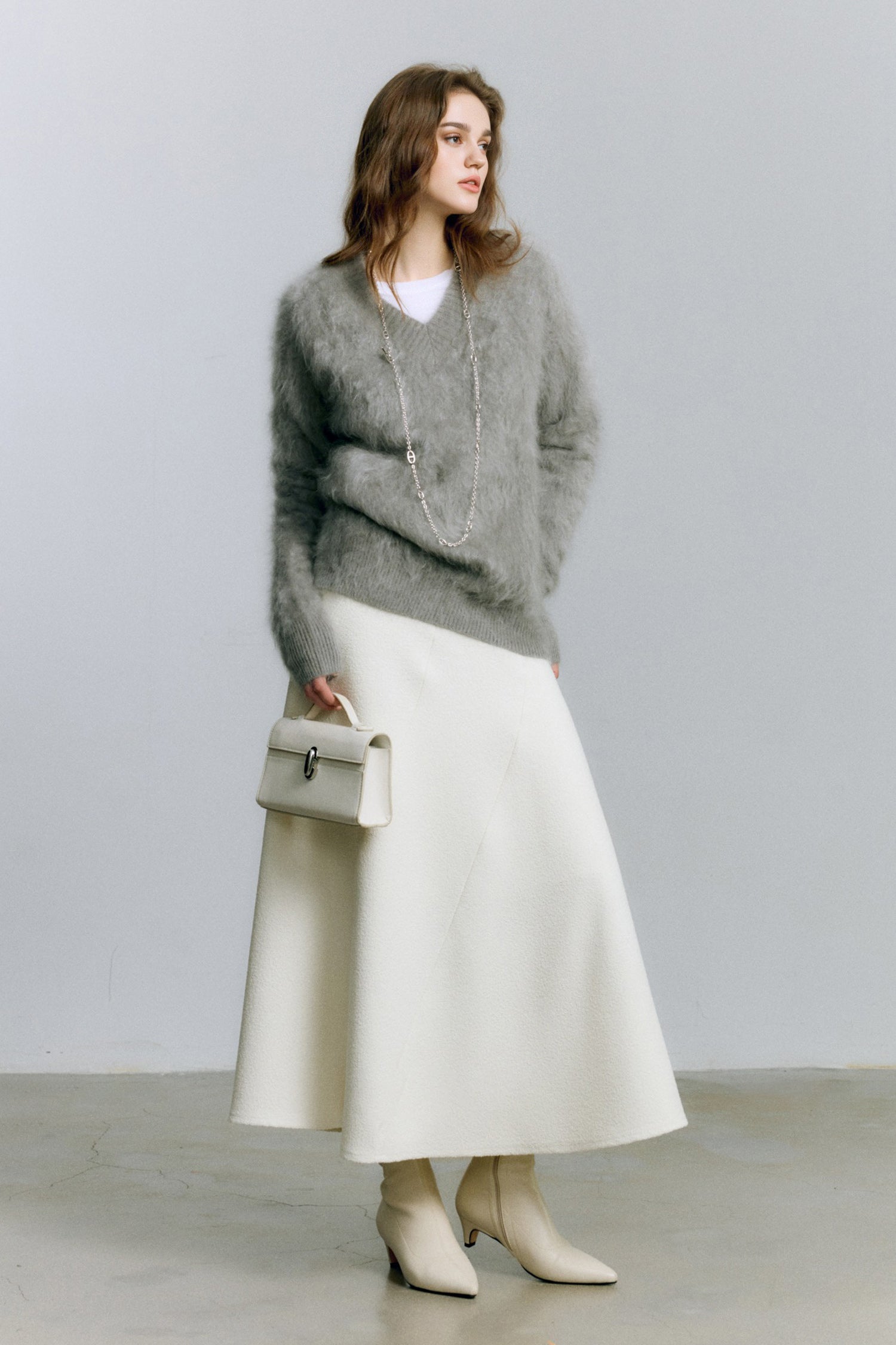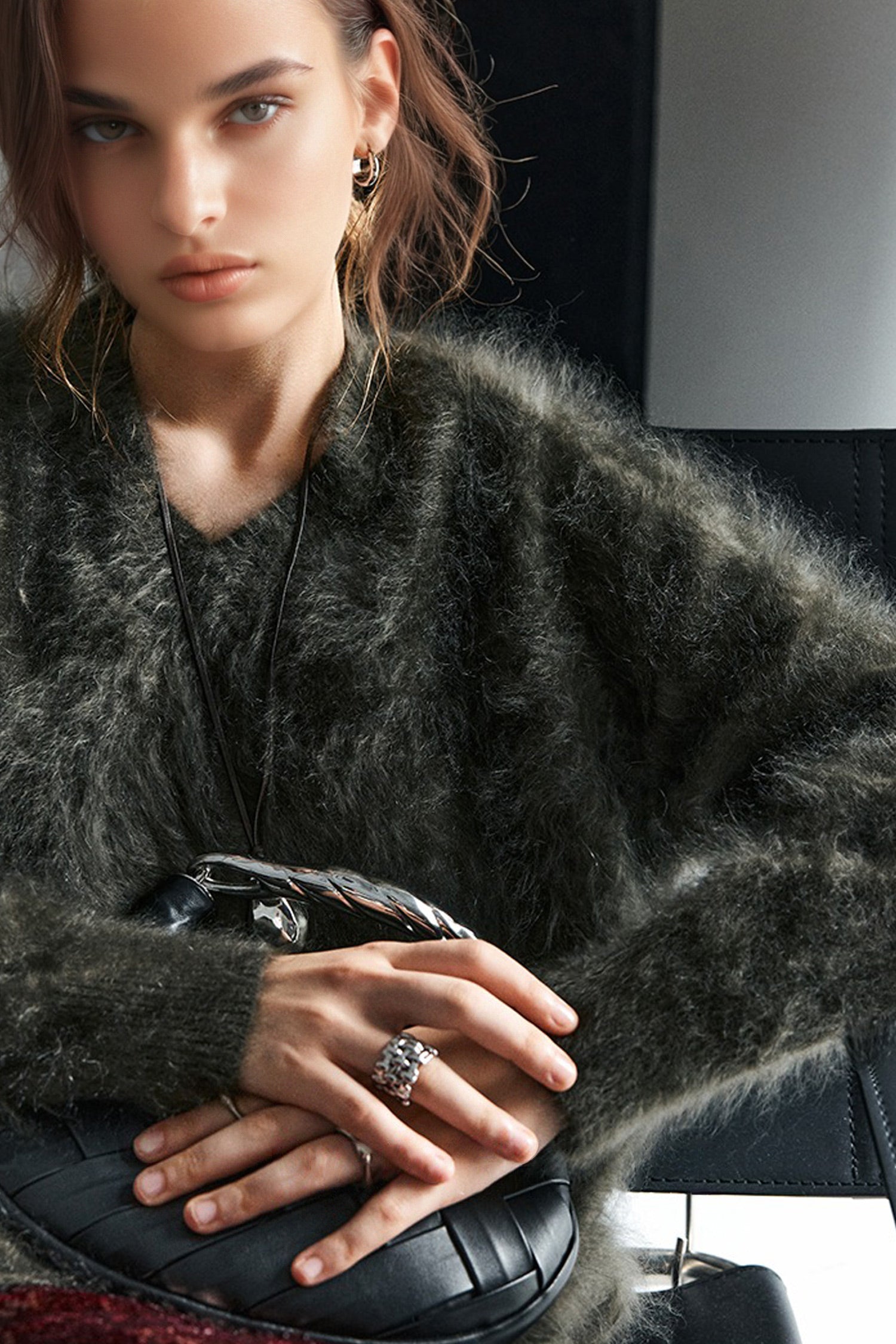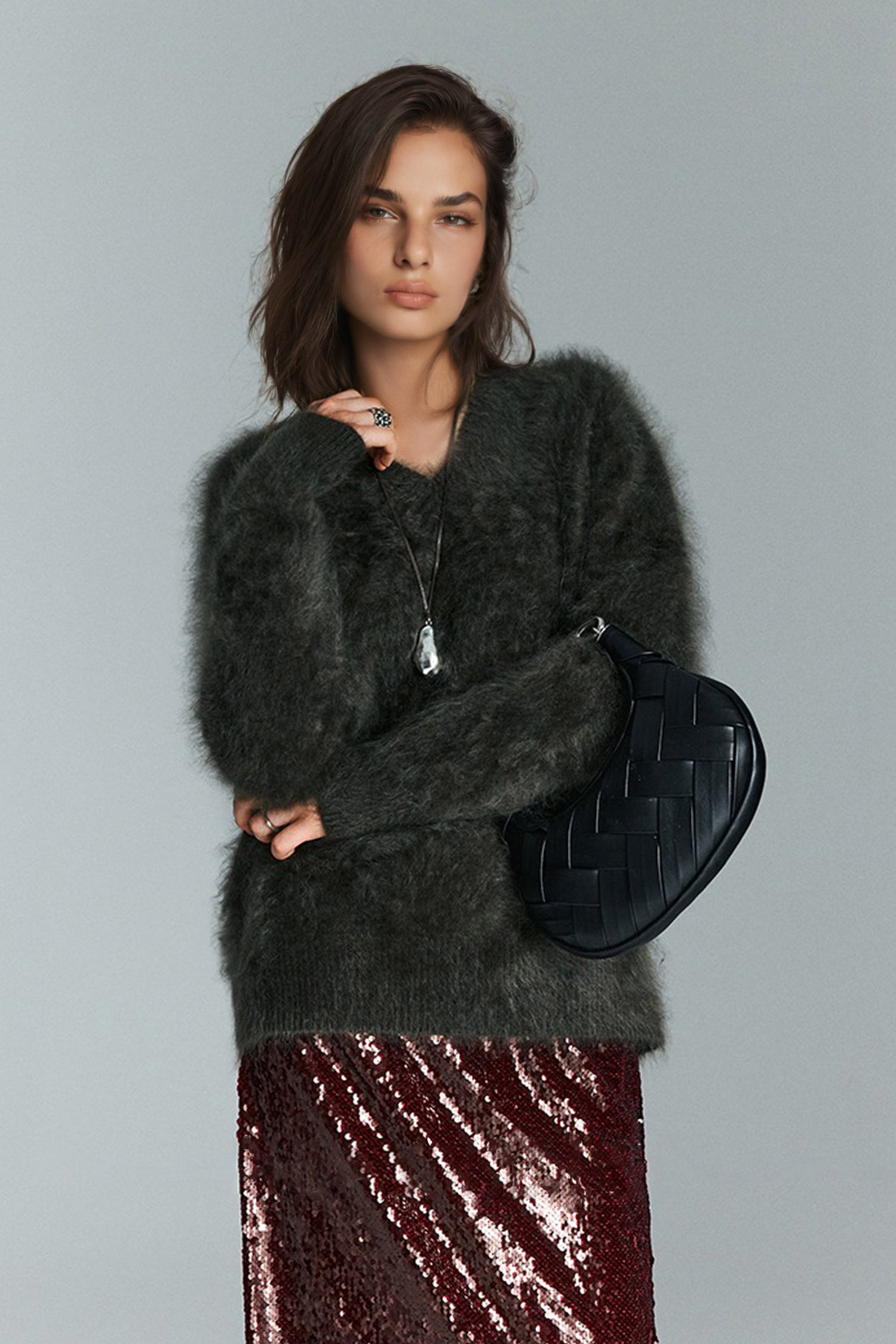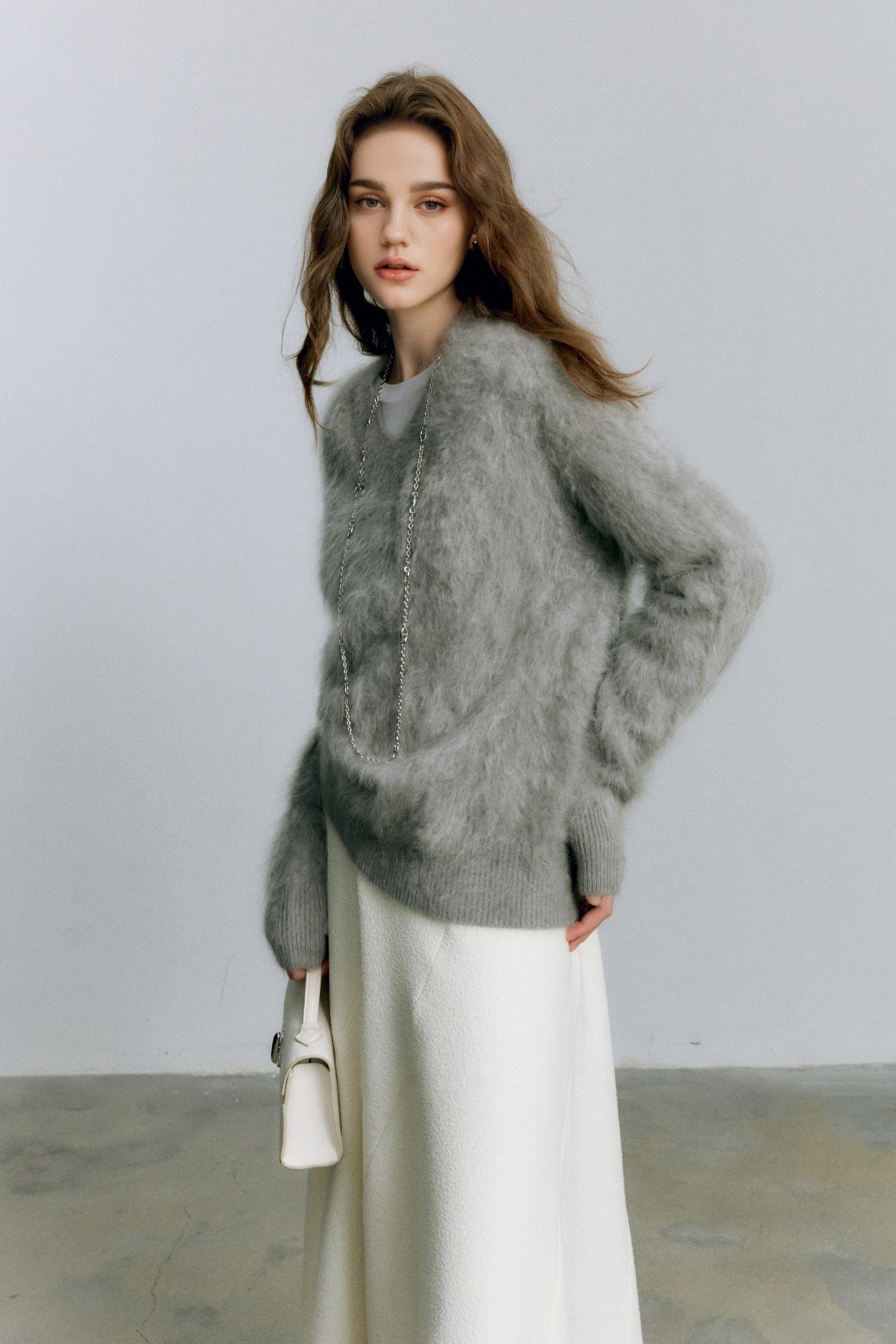 Indulge in the warmth of this chunky brushed cashmere sweater, crafted for effortless elegance and unmatched softness. The relaxed V-neck design and cozy silhouette make it an ideal layer for any occasion.