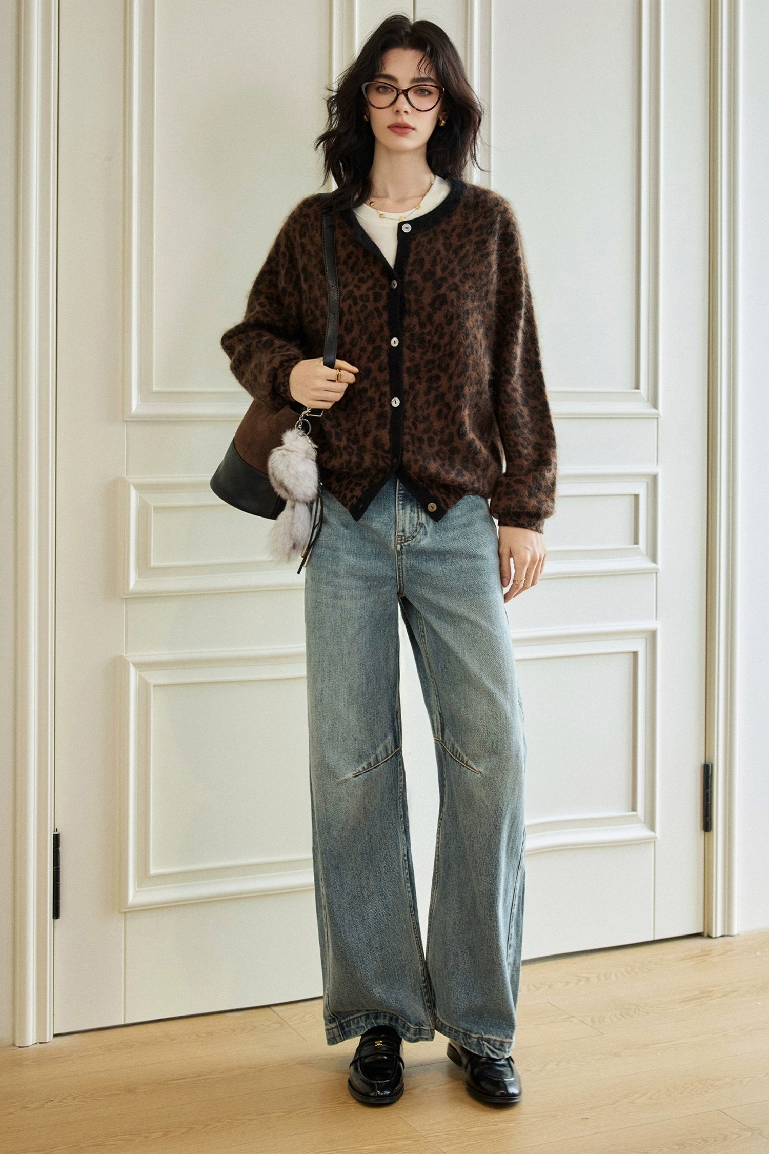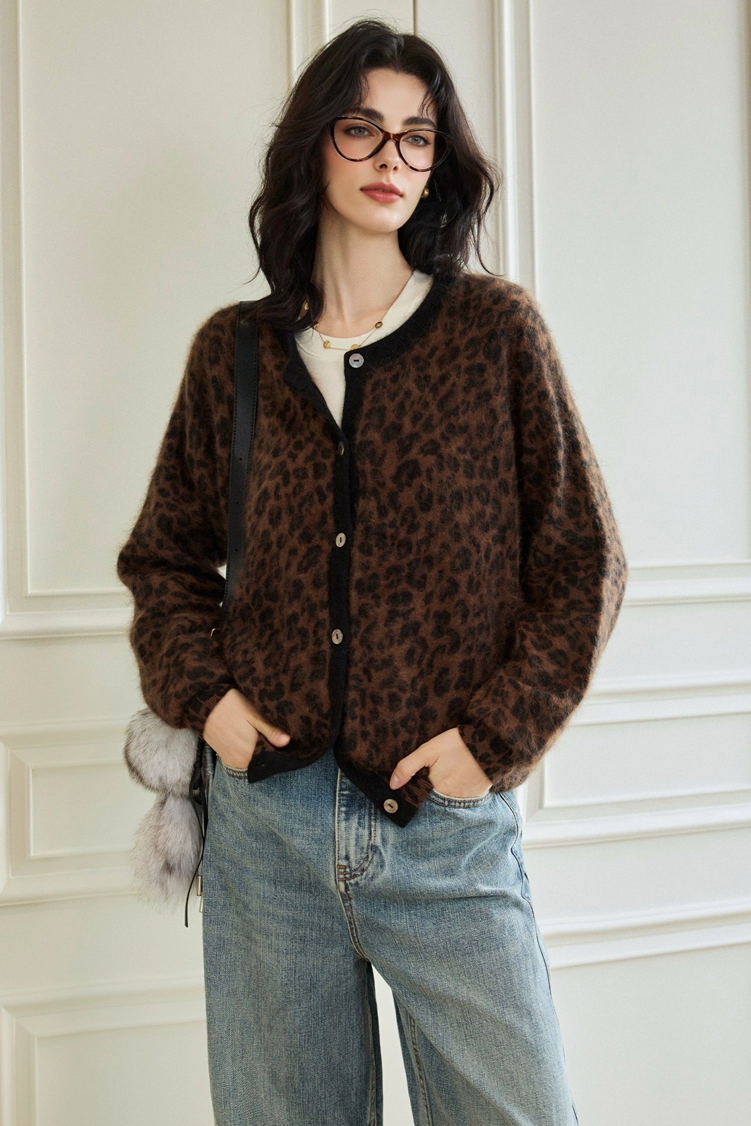 Wild, soft, and quietly elevated — a brushed cashmere leopard cardigan with a refined vintage edge.