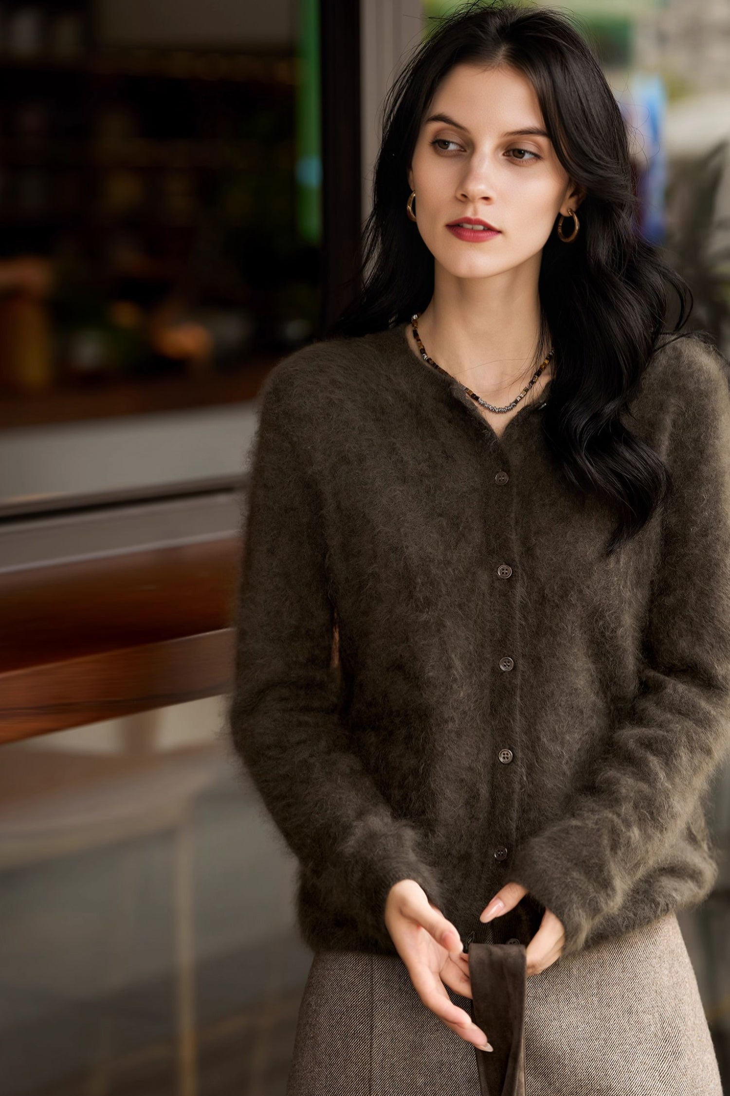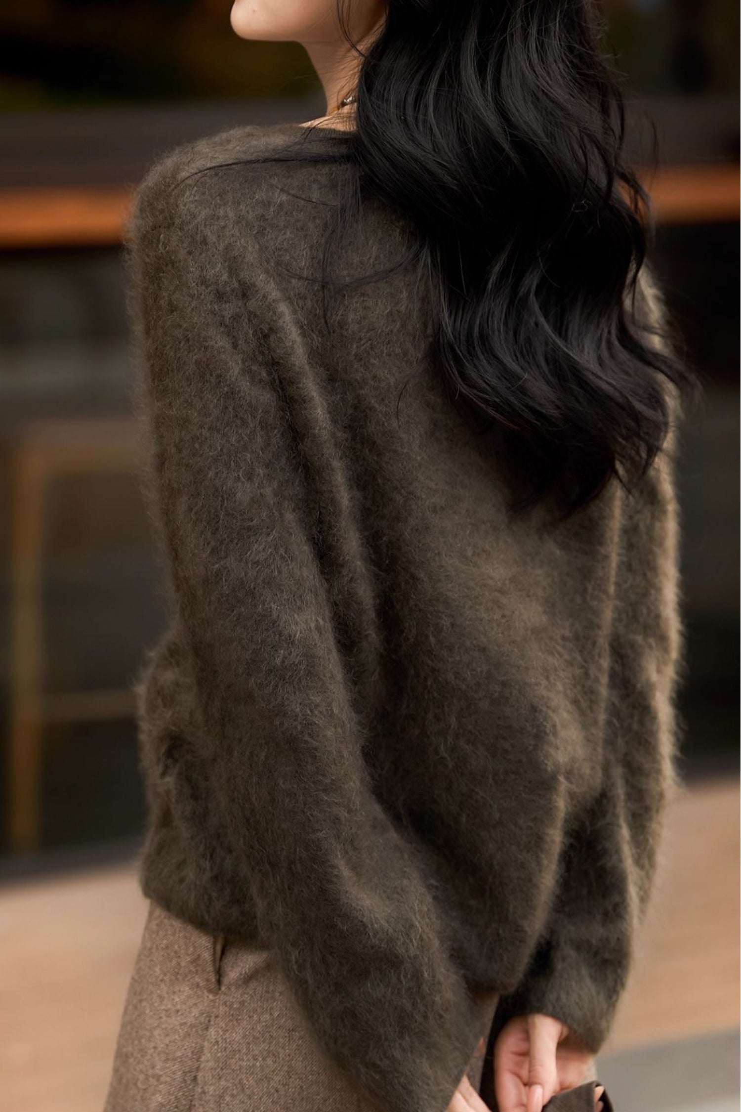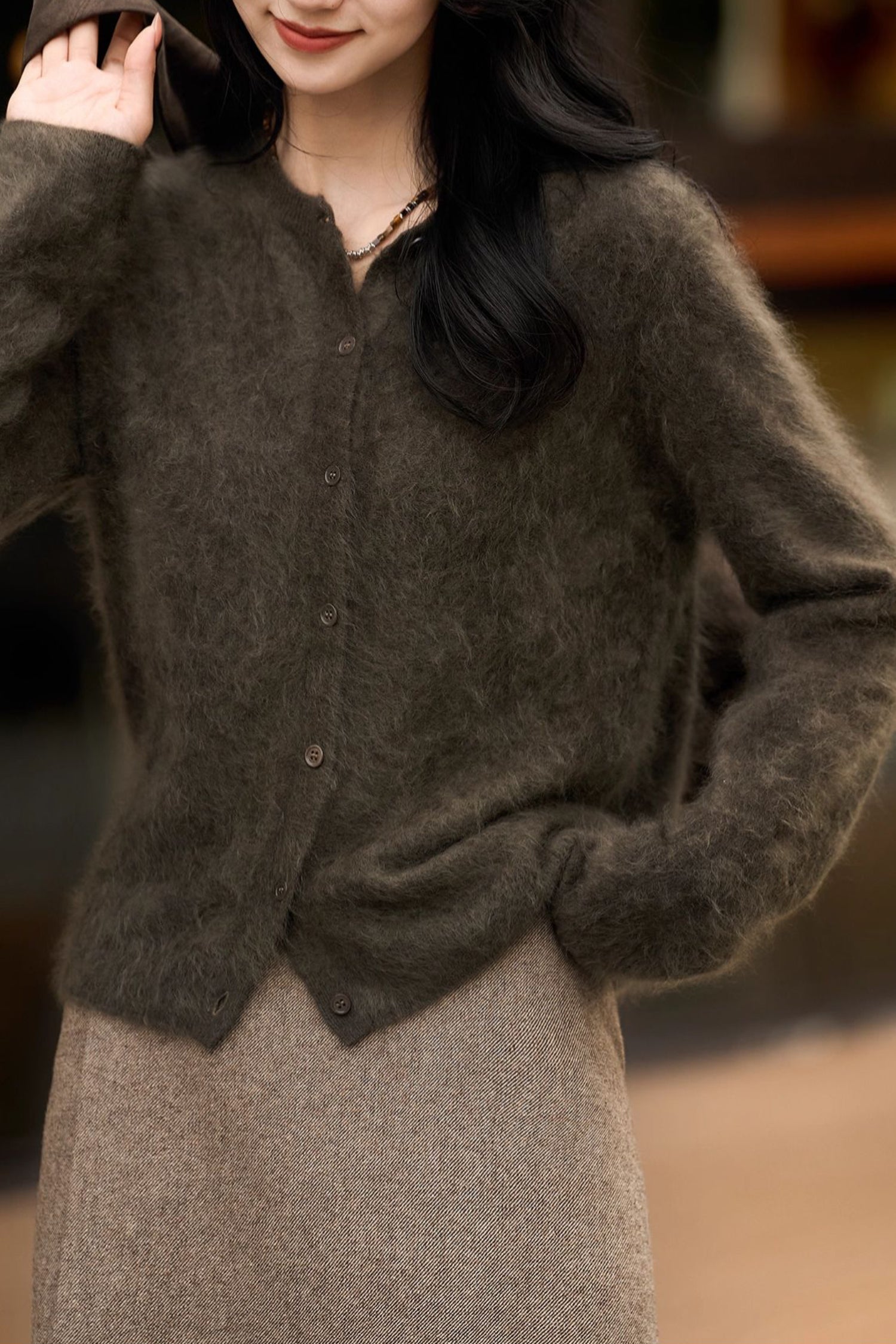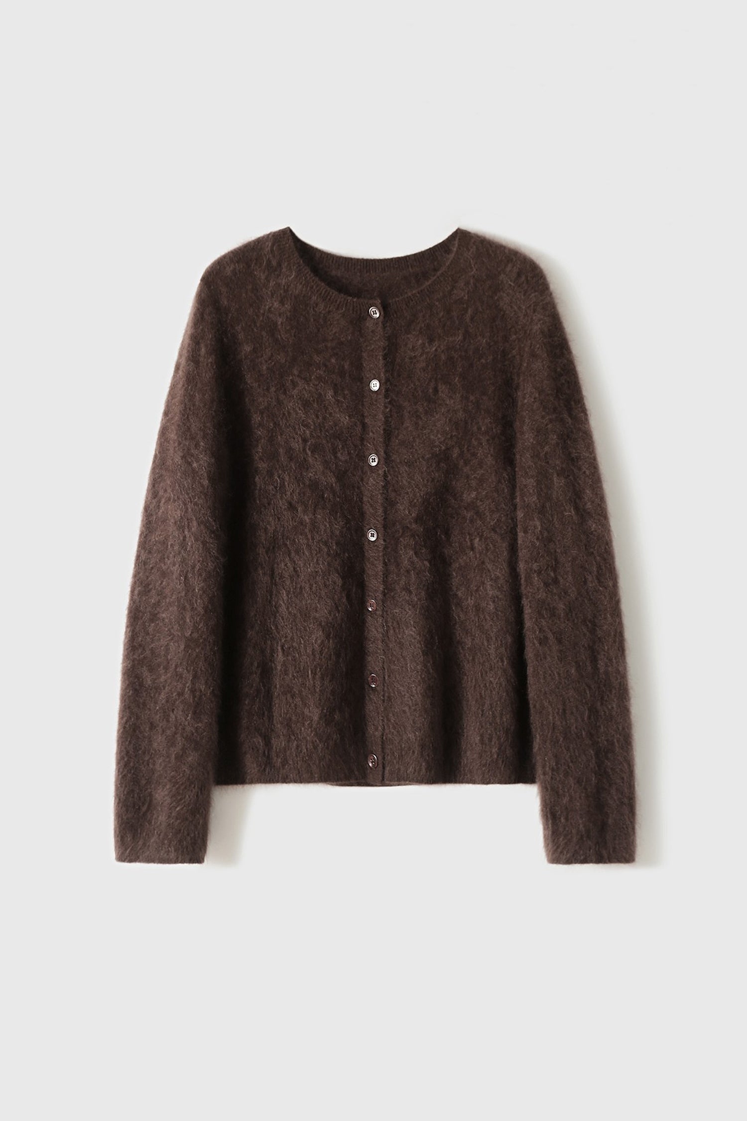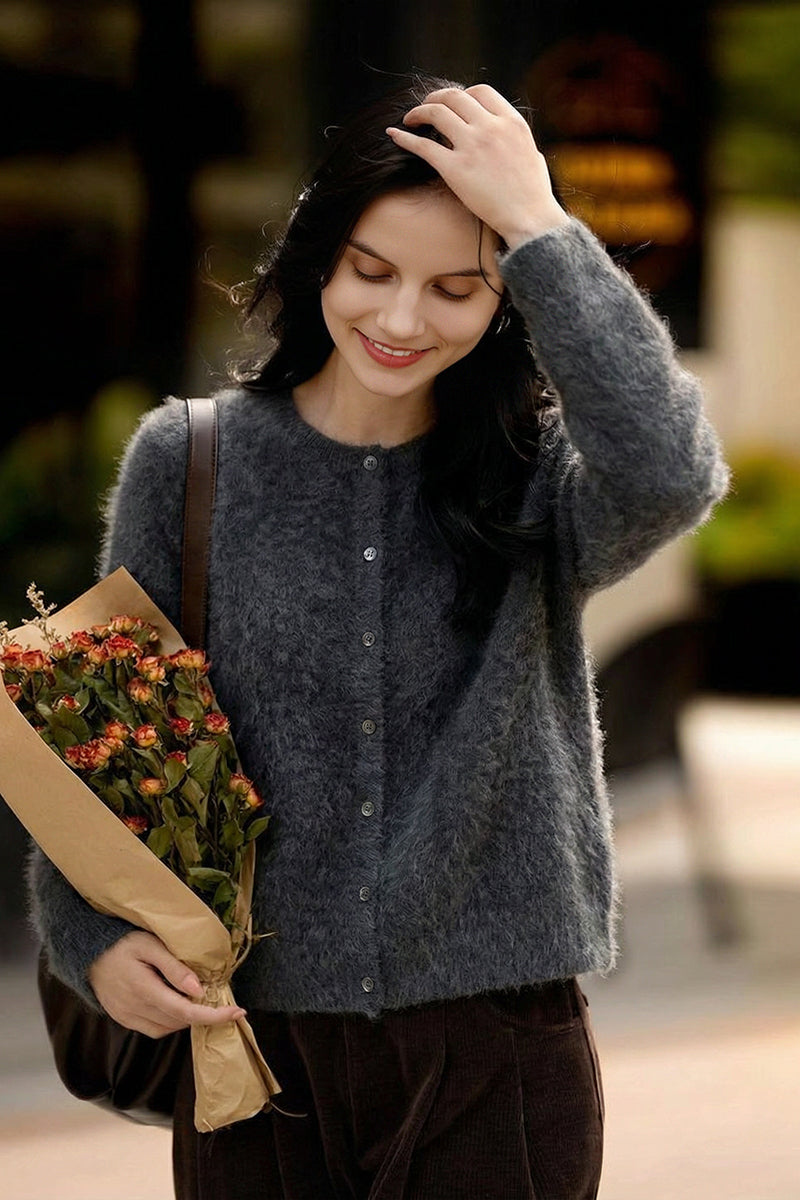 Spun in Italy, our exclusive M.ORO Cashmere yarn is crafted from rare Albas-region goat cashmere, known for its exceptional purity, superior fiber length, and ultra-fine 15.3–15.5μm softness. Each cardigan undergoes a multi-stage artisan brushing process — 7–12 hours of water-softening, controlled brushing, and a 48-hour natural dry — creating a velvety bloom that feels cloud-light, warm and effortlessly luxurious. Layer it over a silk cami for softness-on-skin or pair with tailored trousers for an effortlessly refined winter silhouette.