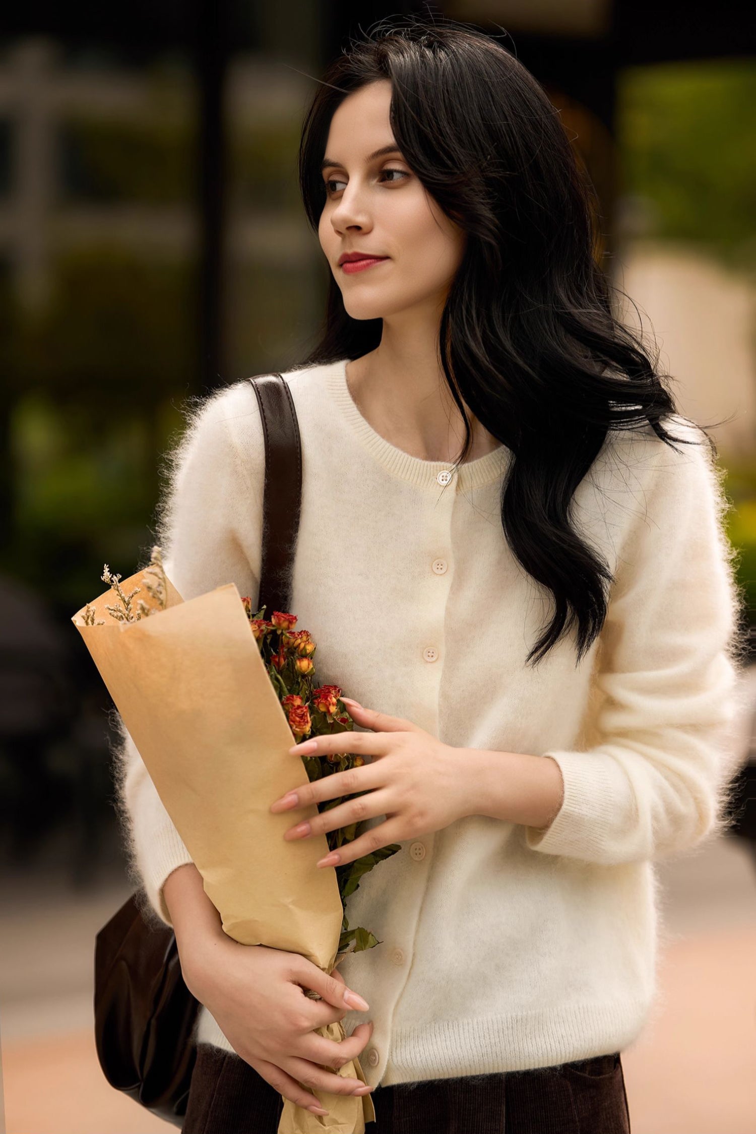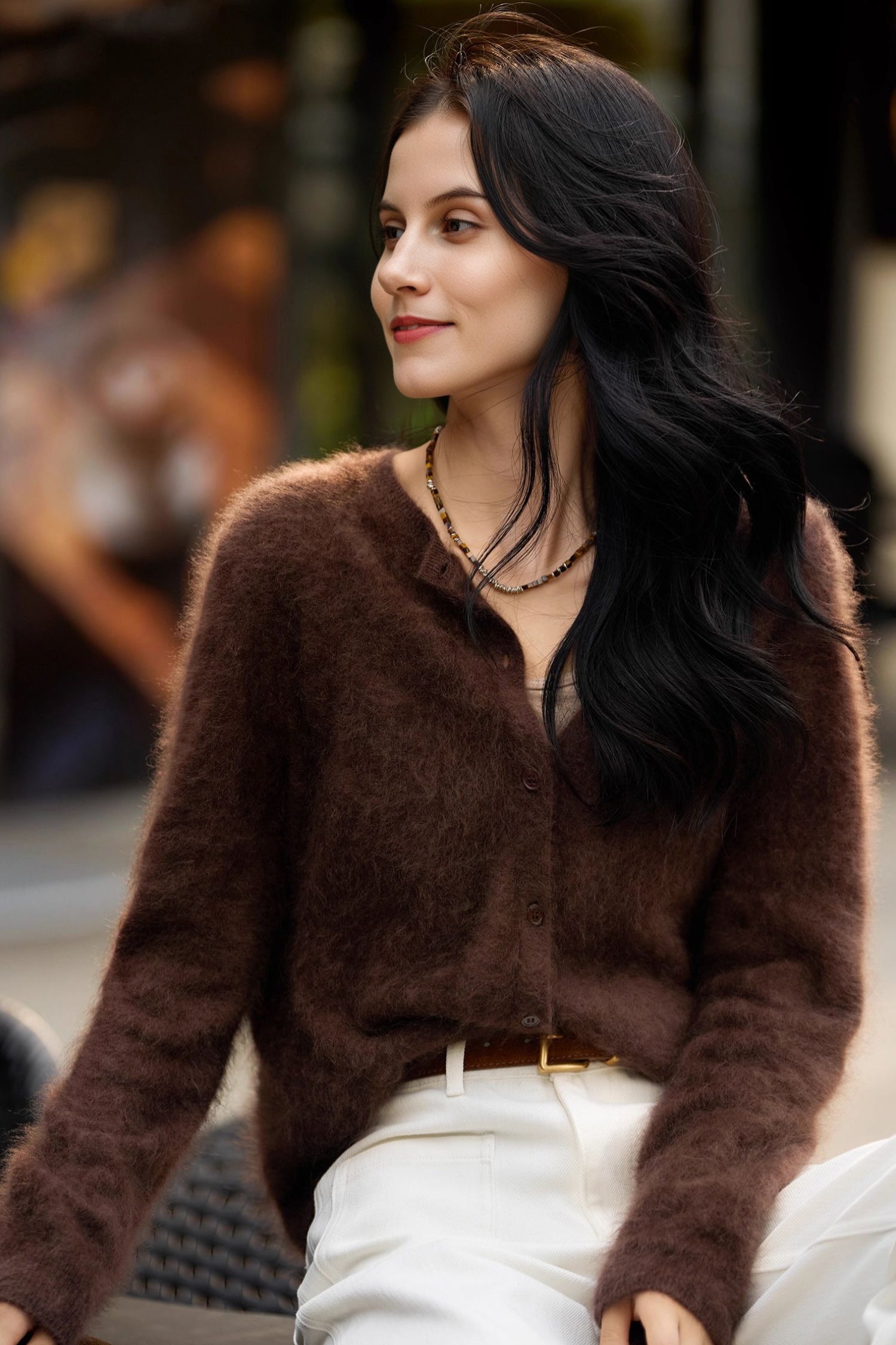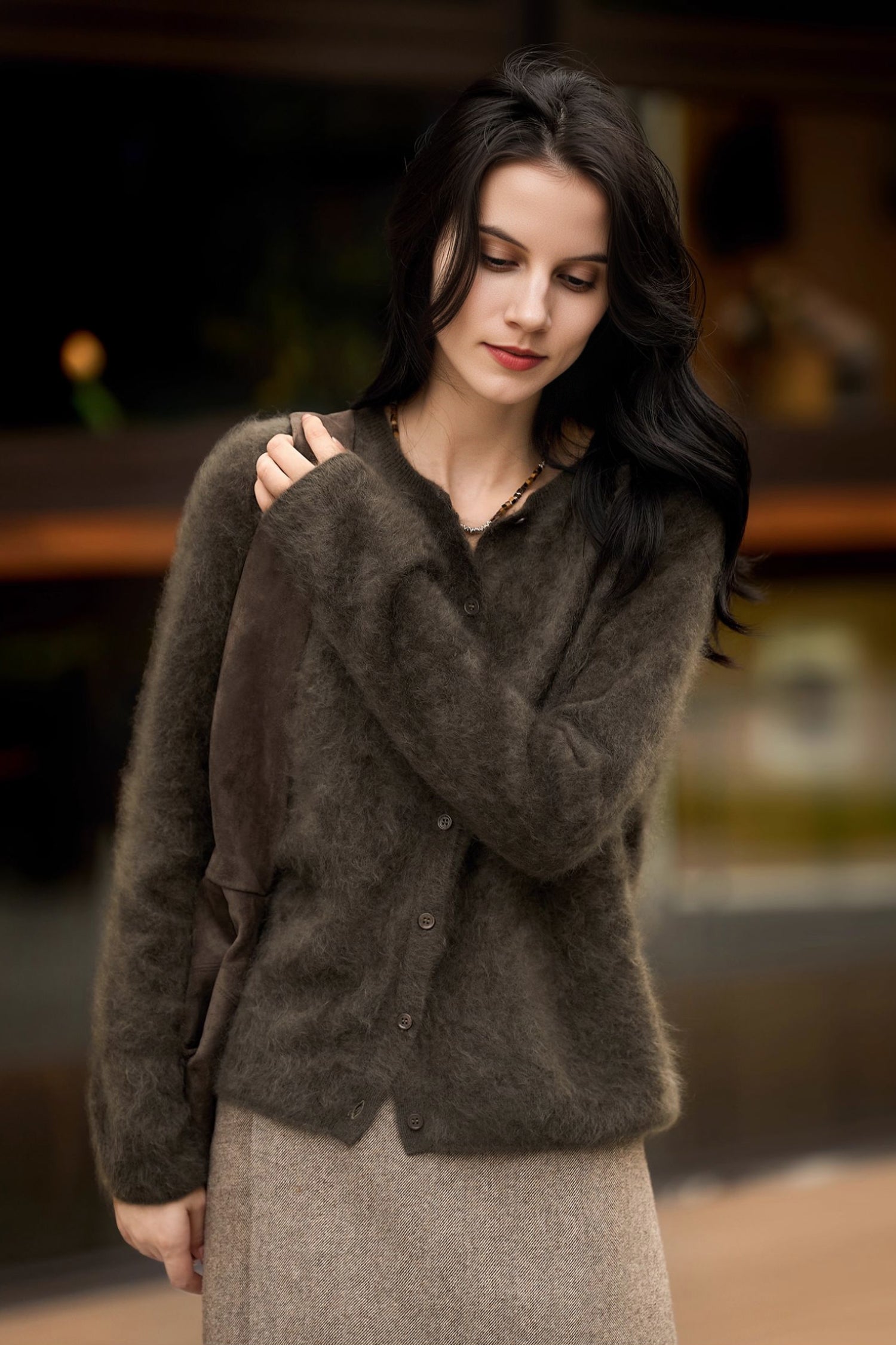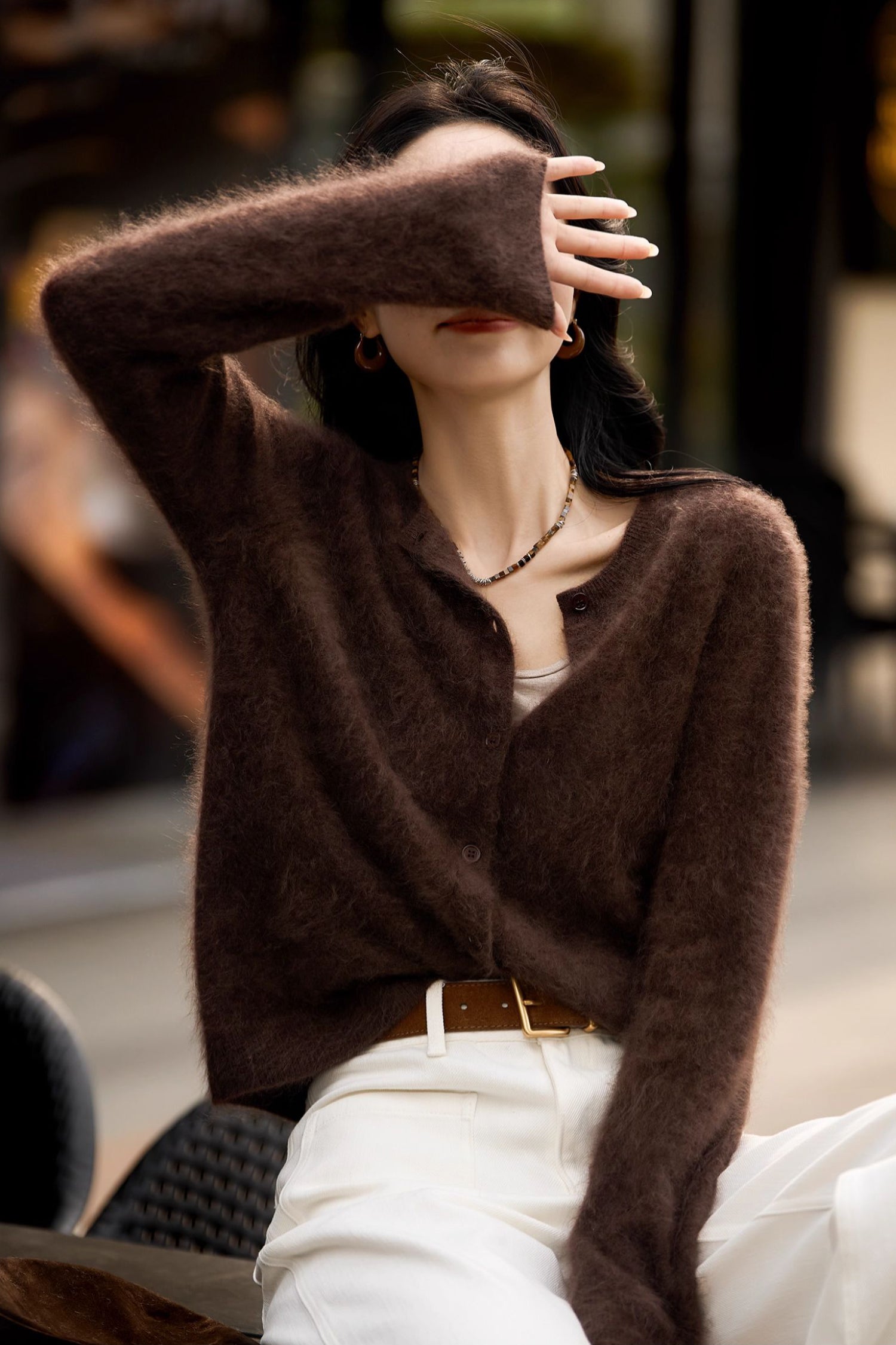 Spun in Italy, our exclusive M.ORO Cashmere yarn is crafted from rare Albas-region goat cashmere, known for its exceptional purity, superior fiber length, and ultra-fine 15.3–15.5μm softness. Each cardigan undergoes a multi-stage artisan brushing process — 7–12 hours of water-softening, controlled brushing, and a 48-hour natural dry — creating a velvety bloom that feels cloud-light, warm and effortlessly luxurious. Layer it over a silk cami for softness-on-skin or pair with tailored trousers for an effortlessly refined winter silhouette.
