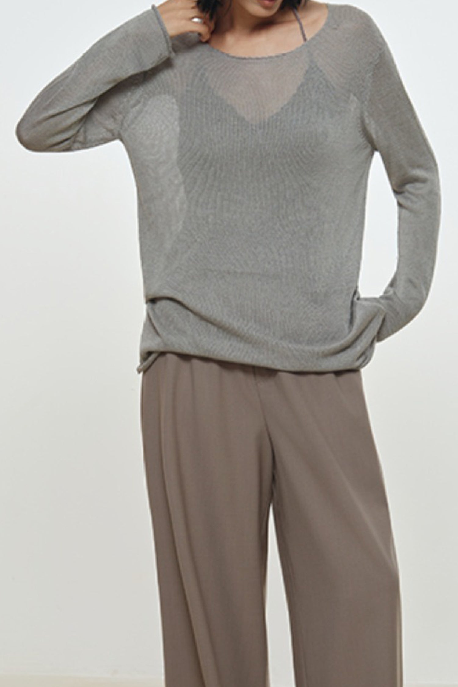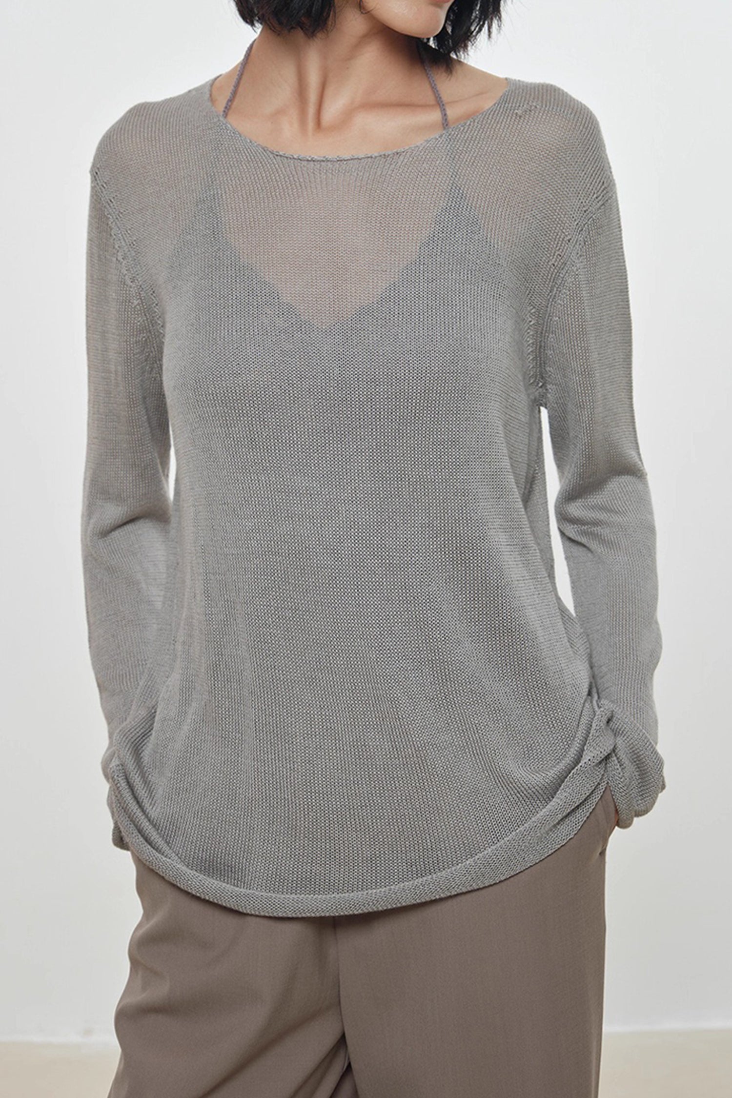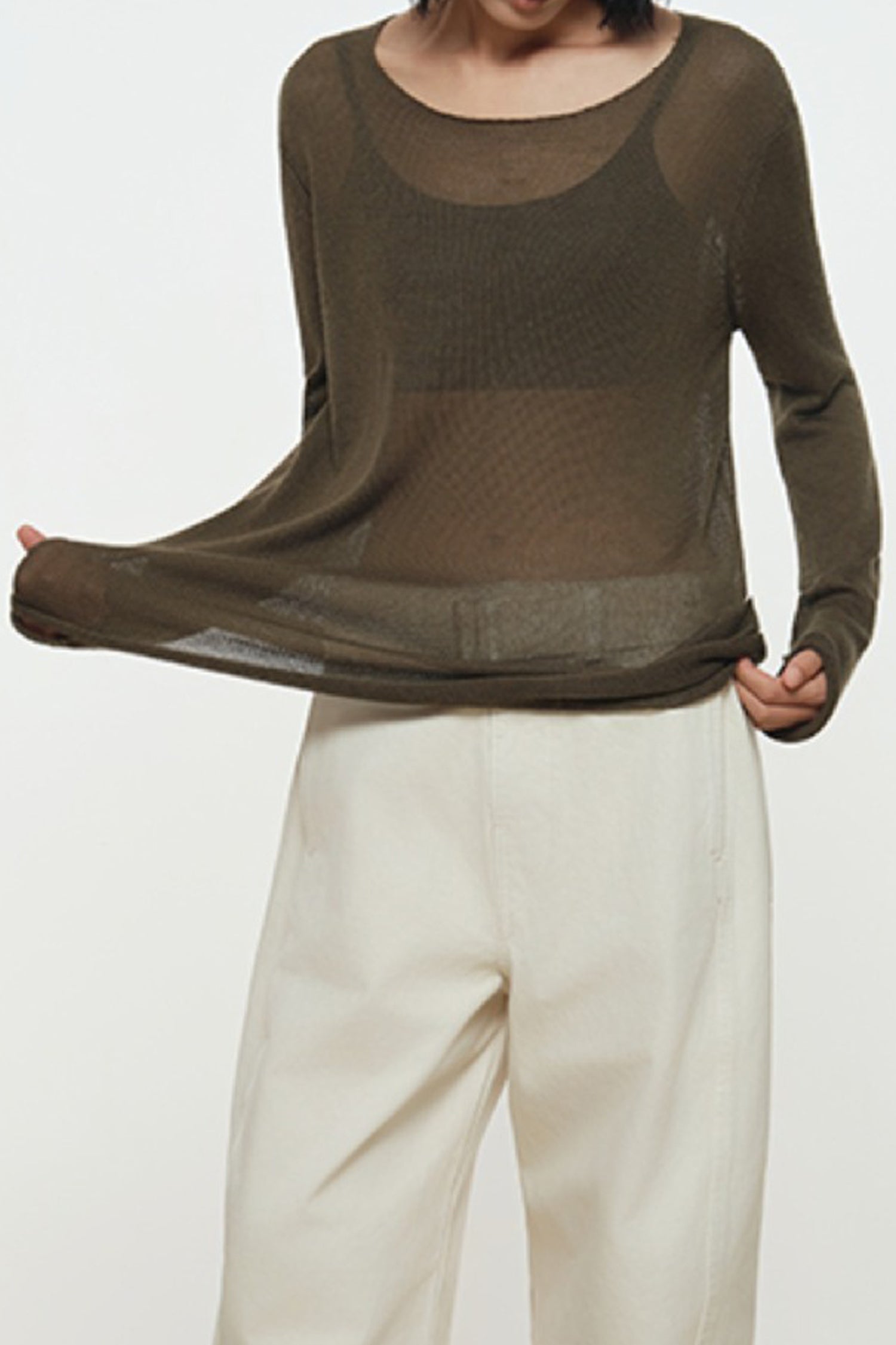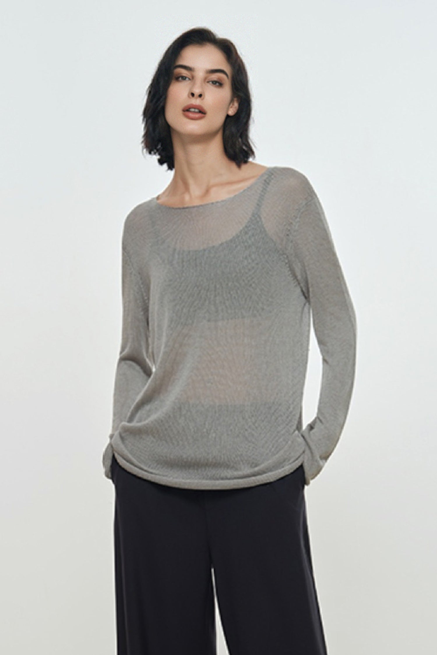 Barely there yet undeniably refined, this sheer long sleeve top combines silk and cashmere for a featherlight feel. The open-knit texture lets air and light flow freely, offering a graceful, see-through layer that lives close to the skin.