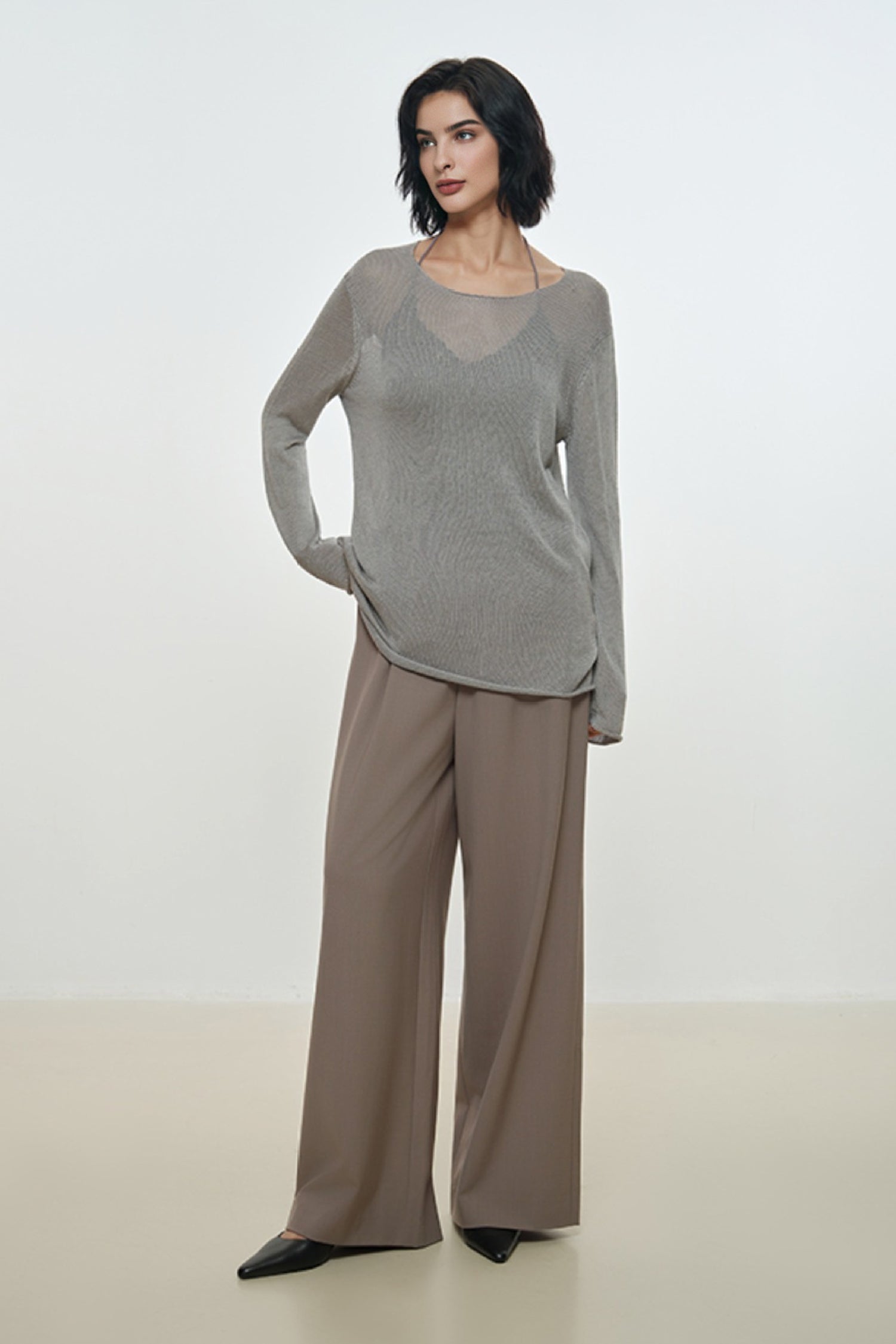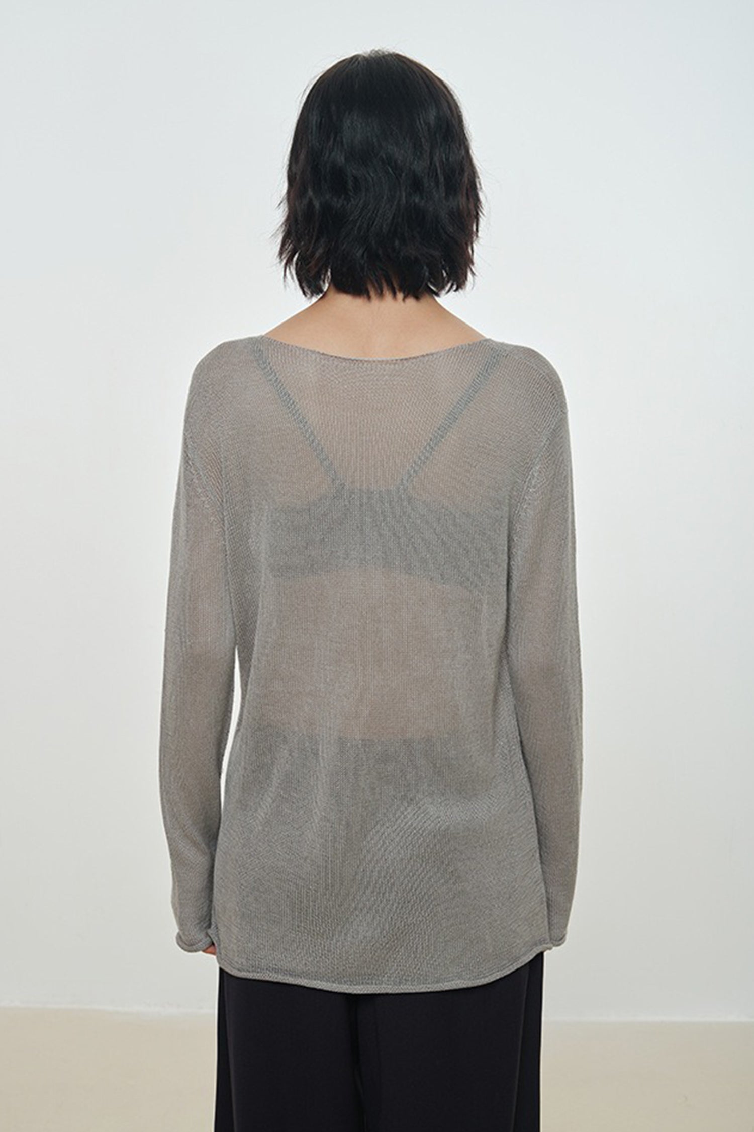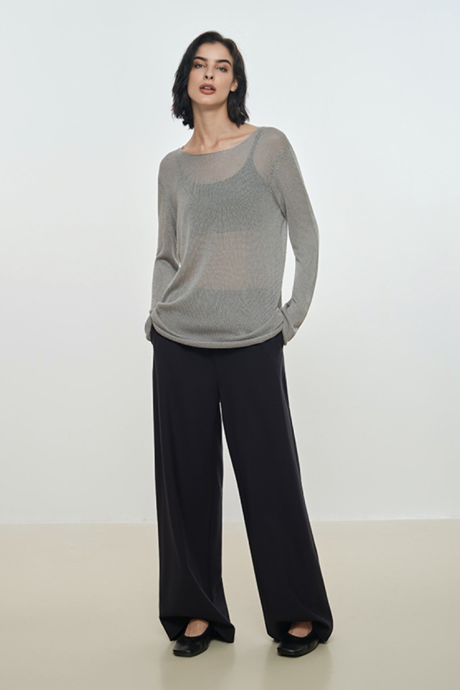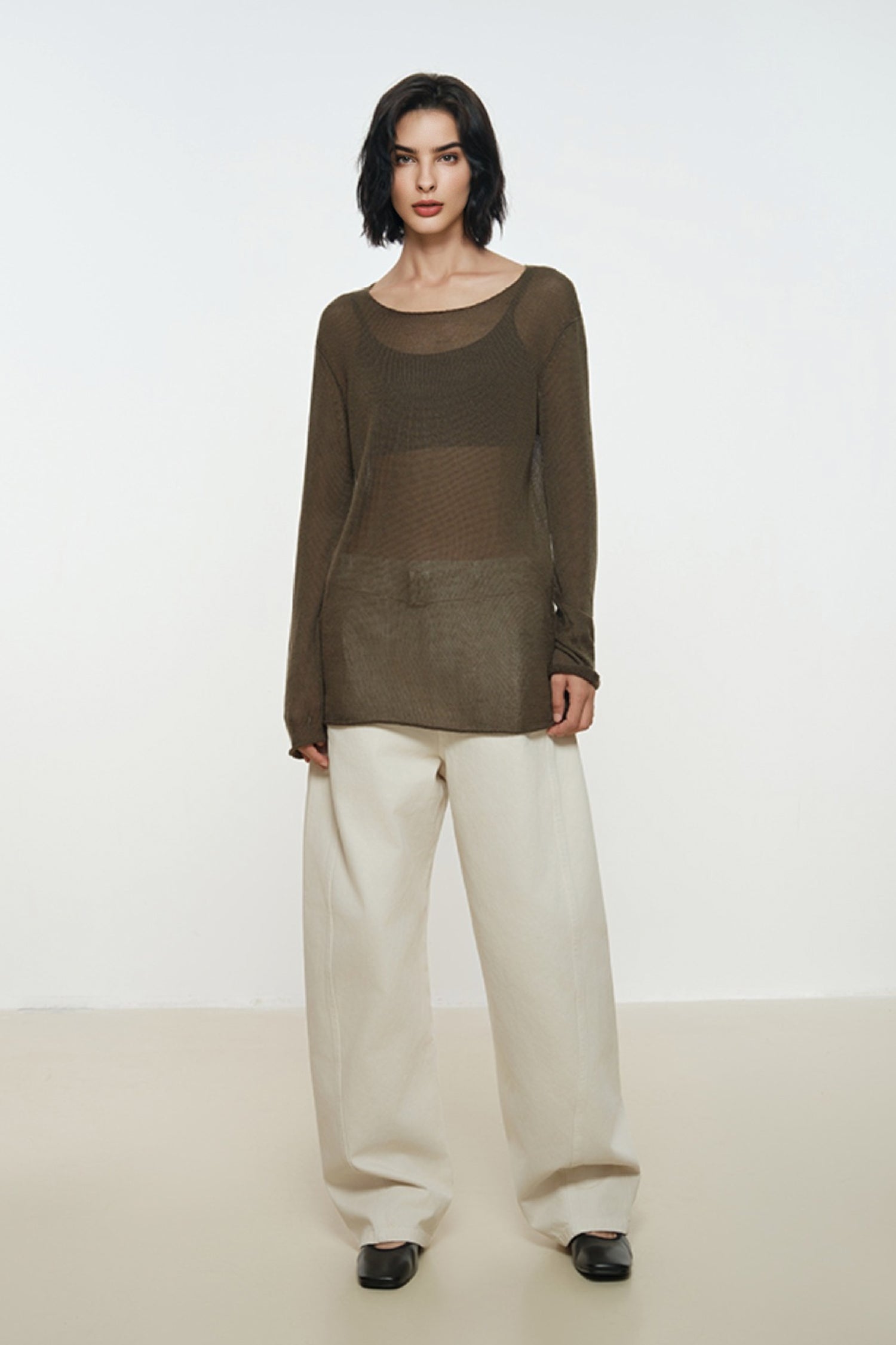 Barely there yet undeniably refined, this sheer long sleeve top combines silk and cashmere for a featherlight feel. The open-knit texture lets air and light flow freely, offering a graceful, see-through layer that lives close to the skin.