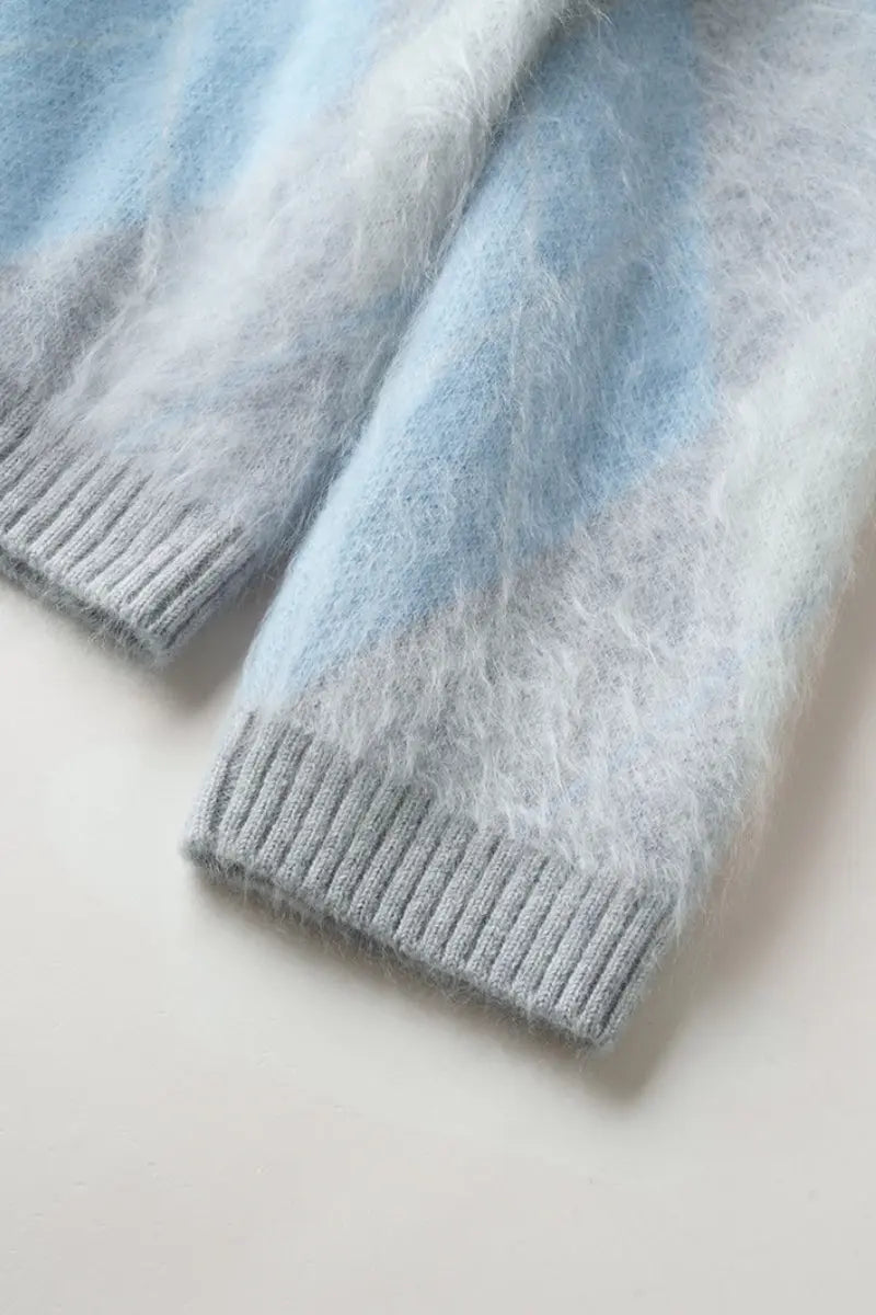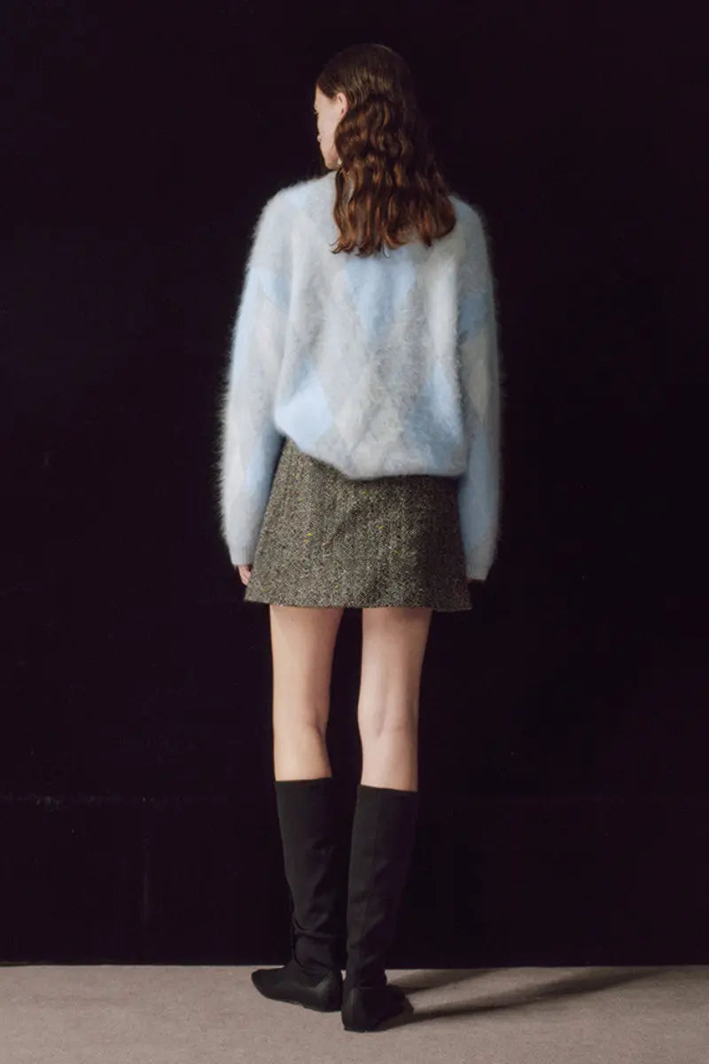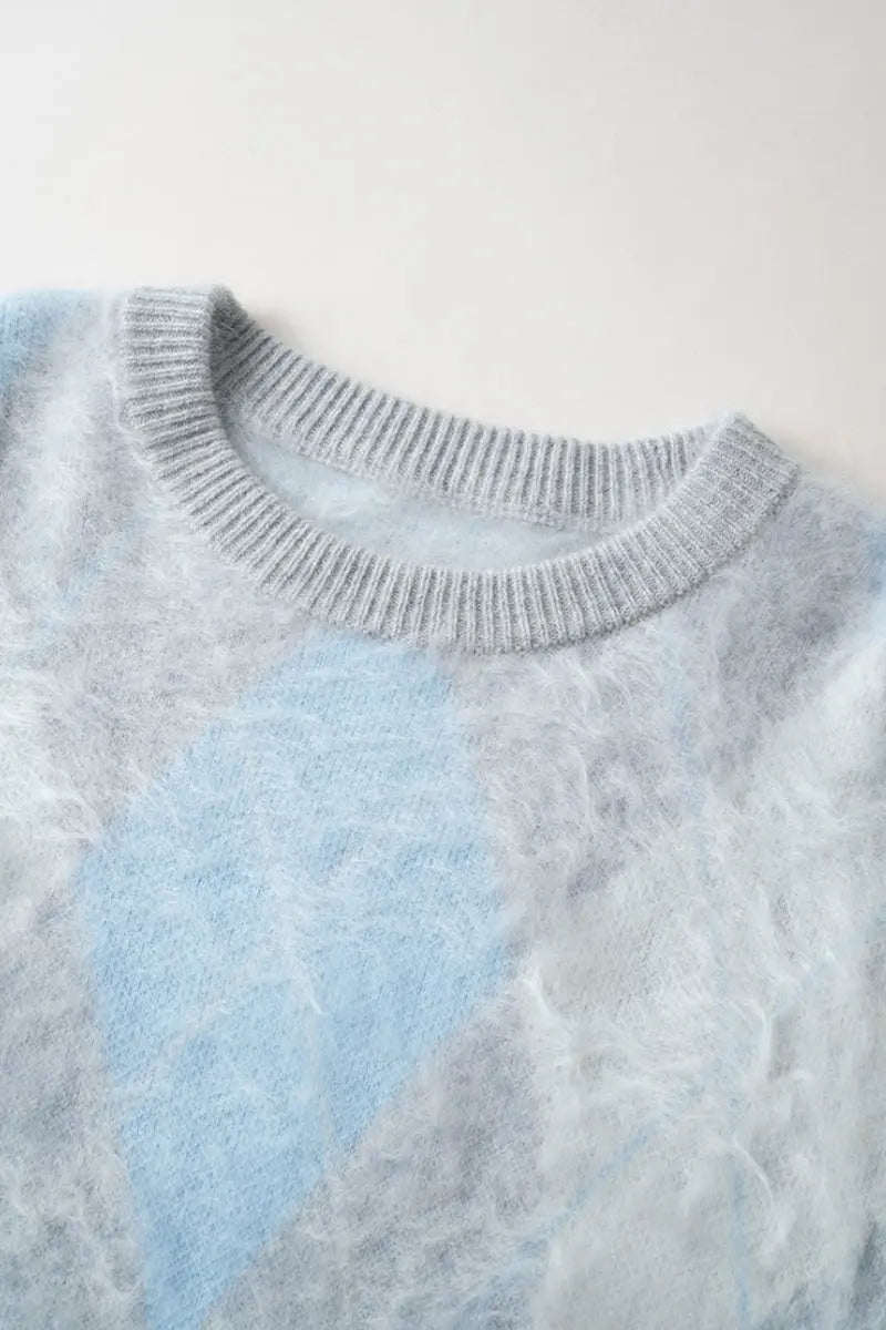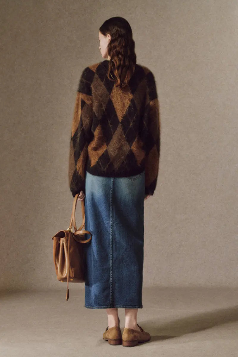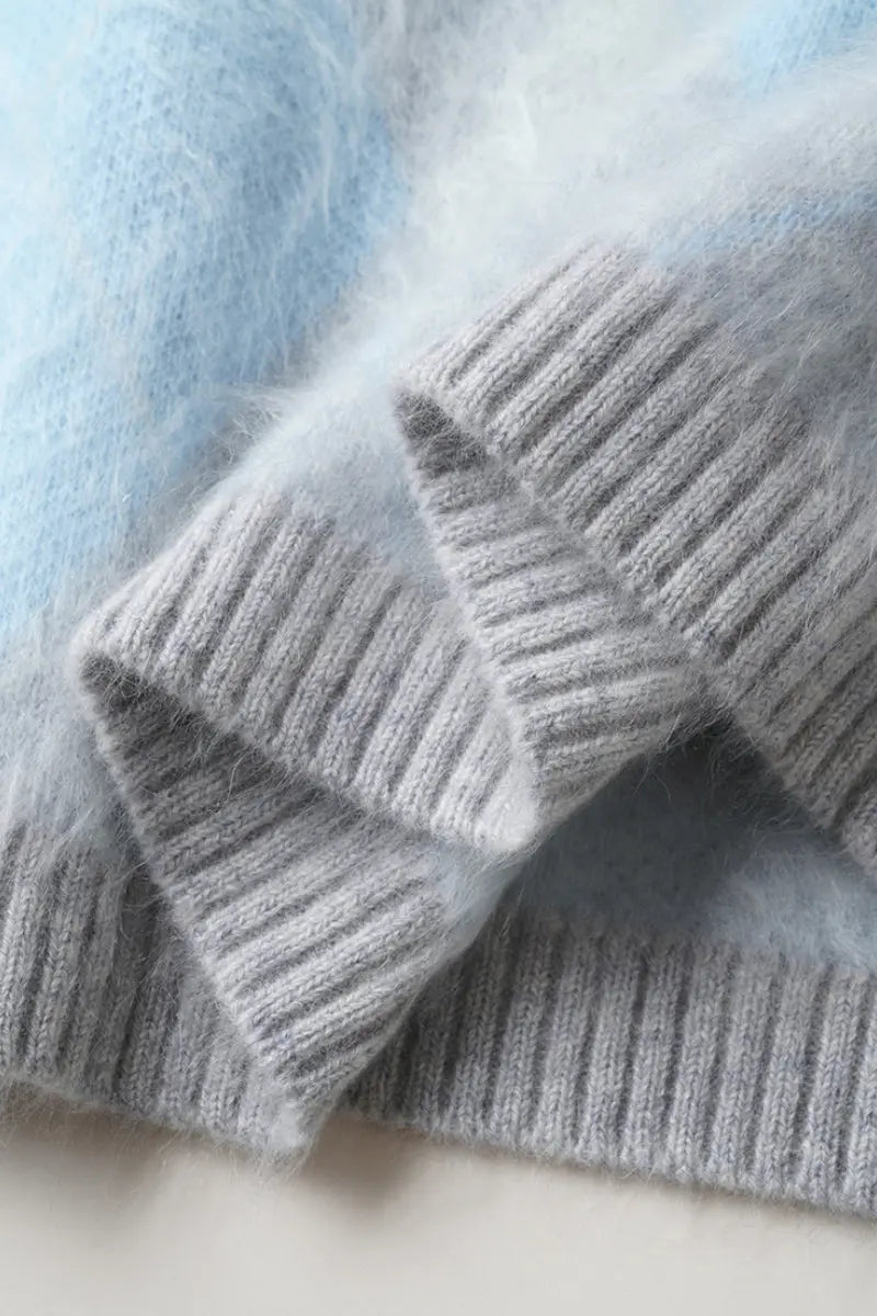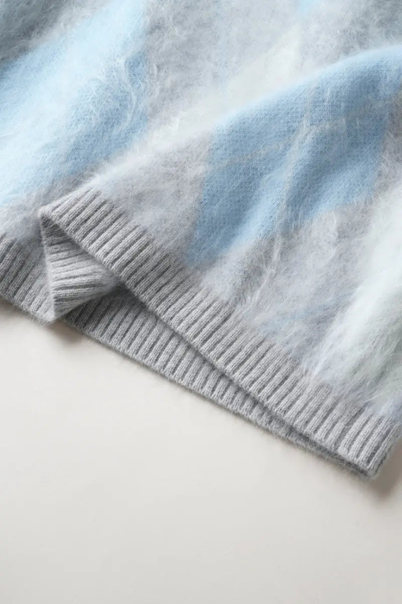 This brushed cashmere sweater redefines elegance with its vintage argyle pattern and cozy chunky knit. Featuring a classic crewneck design, it's the perfect light cashmere sweater for layering or standalone wear.